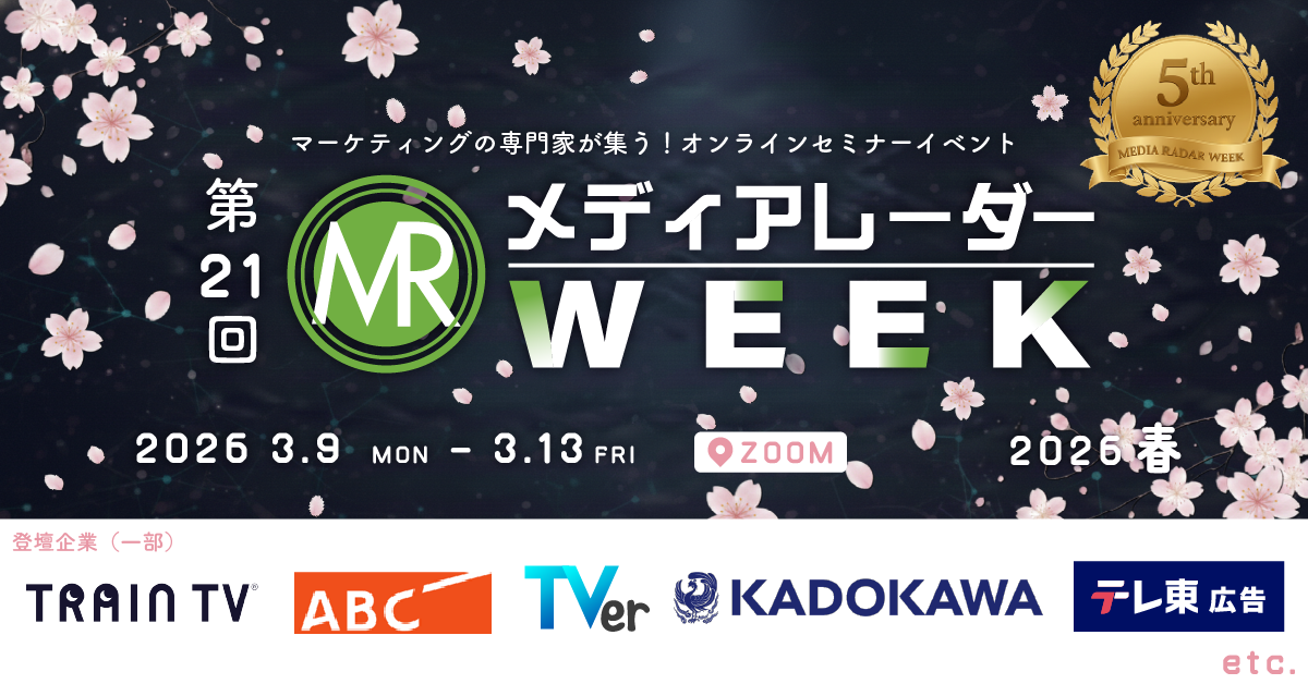 【楽天・TVer・メルカリ・jekiなど登壇】大型セミナーイベント「第21回メディアレーダーWEEK 2026 春」開催決定