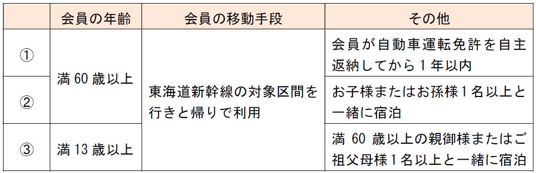 東海旅客鉄道株式会社、東急不動産ホールディングス株式会社、東急不動産株式会社、東急リゾーツ&ステイ株式会社は、東急ハーヴェストクラブ会員(以下、会員)が運転免許証の自主返納や二世帯での旅行等の条件を満たし、東海道新幹線で移動して宿泊する場合に特典を付与するキャンペーンを共同で実施します。