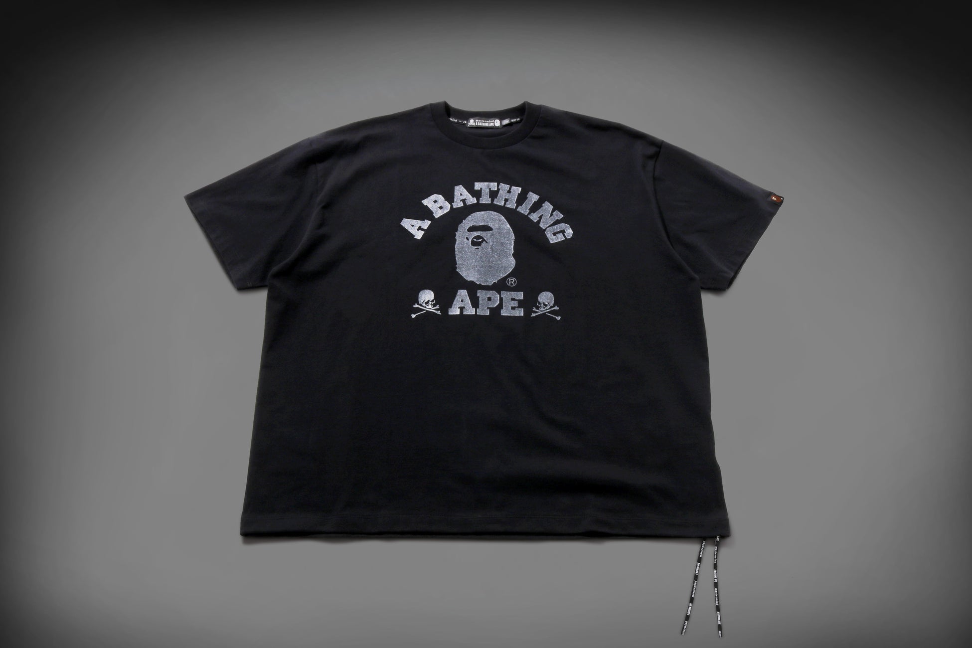 「COLLEGE TEE」は、BAPE®︎のカレッジロゴからインスパイアしました。前後に、BAPE®︎とMASTERMIND WORLDのパートナーシップを示す特別にアレンジしたブランド名を、ビンテージ風プリントを駆使して表情豊かに仕上げました