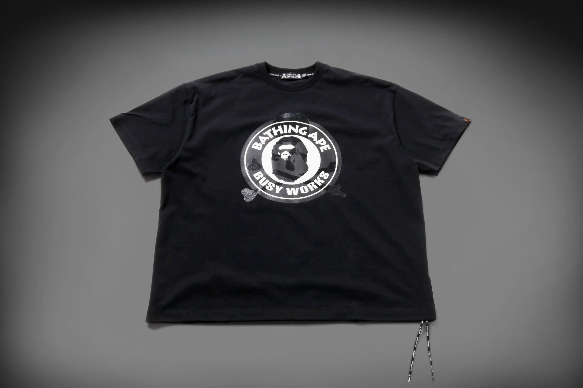 「BUSY WORKS TEE」は、BAPE®︎のアーカイブデザインの一つであるBUSY WORKSロゴとクロスボーンスカルを重ねてプリント。プリントの手法を変えることで、グラフィックに深みのあるタッチを生み出しています。