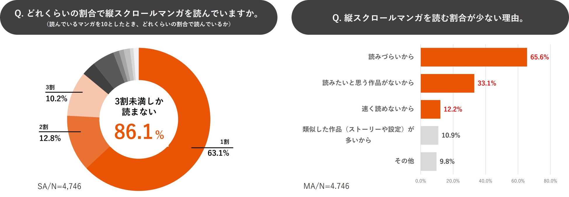 一方で、ユーザーが「縦スクロールマンガ」を読んでいる割合は“3割未満”が86.1%。