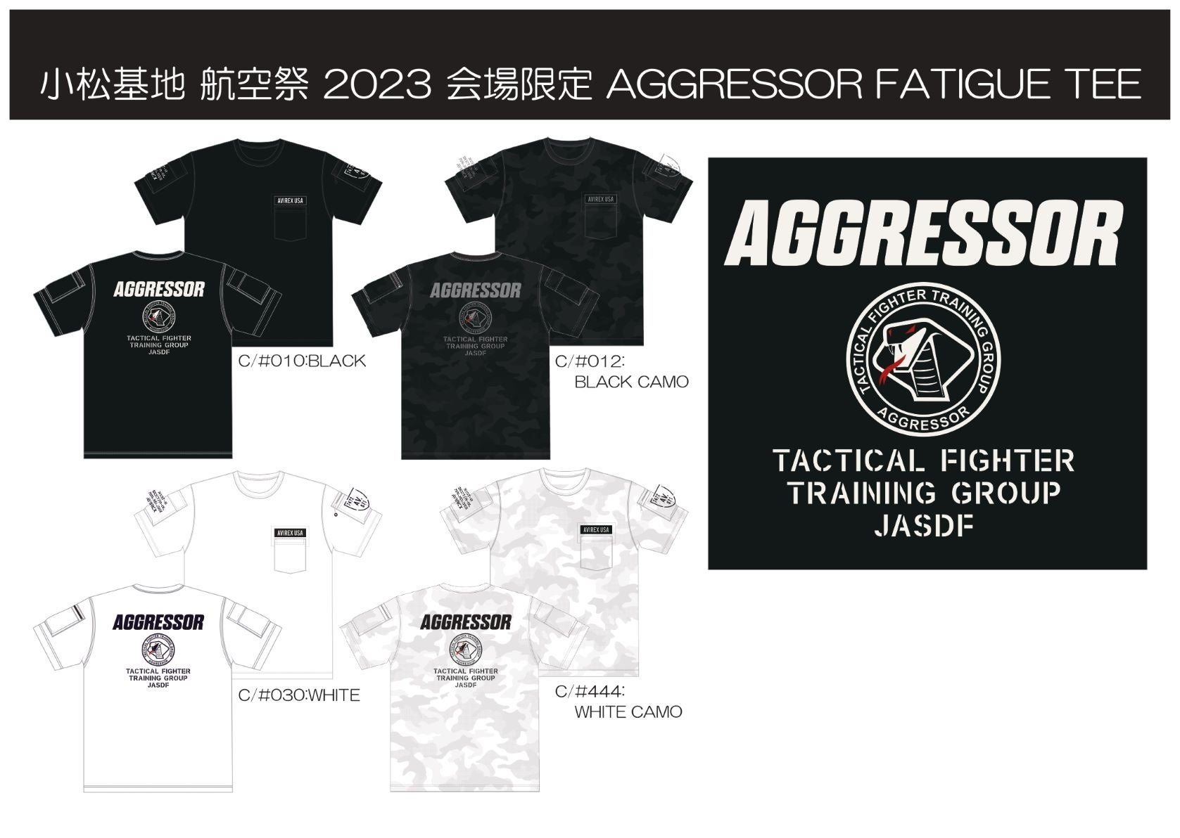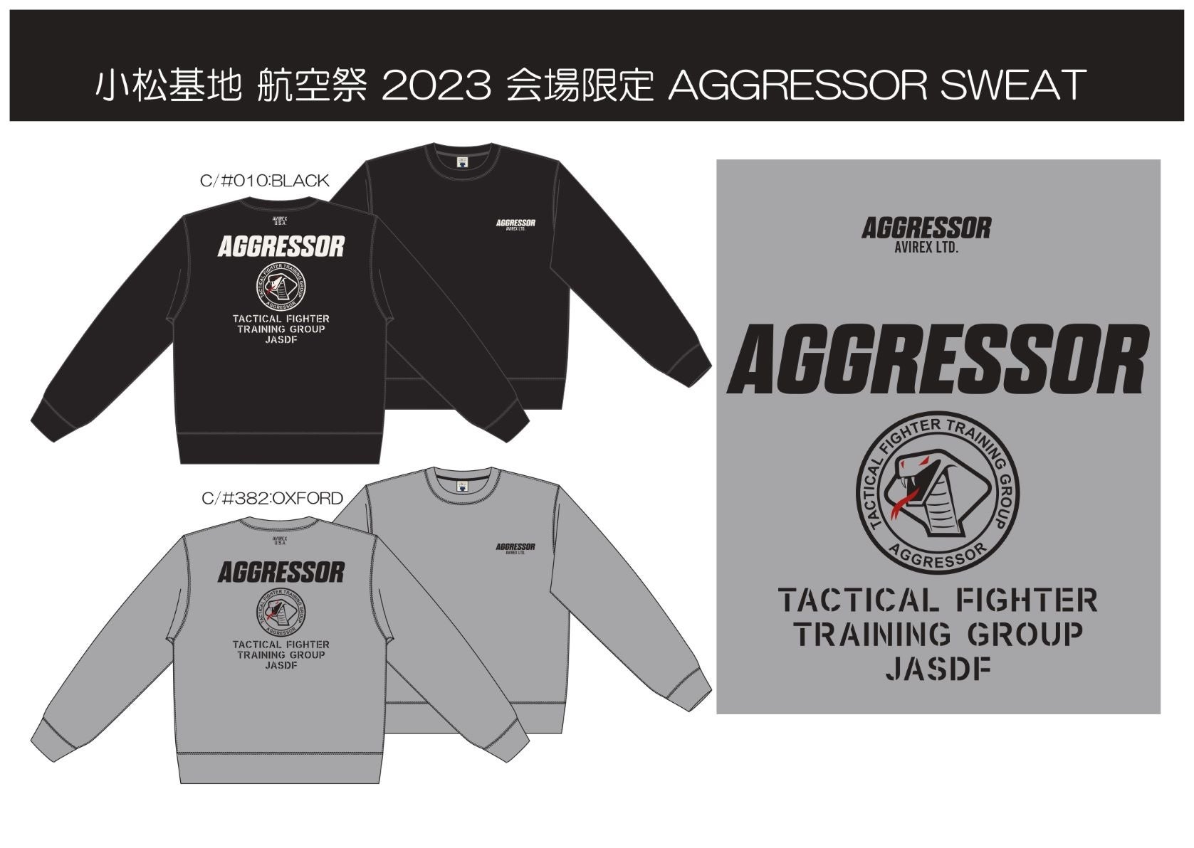 特に今年は「小松基地航空祭2023」のために航空祭限定販売のアグレッサーTシャツやスウェットもご用意しています。 10月7日限りの販売となりますので、ぜひこの機会にお求めください。