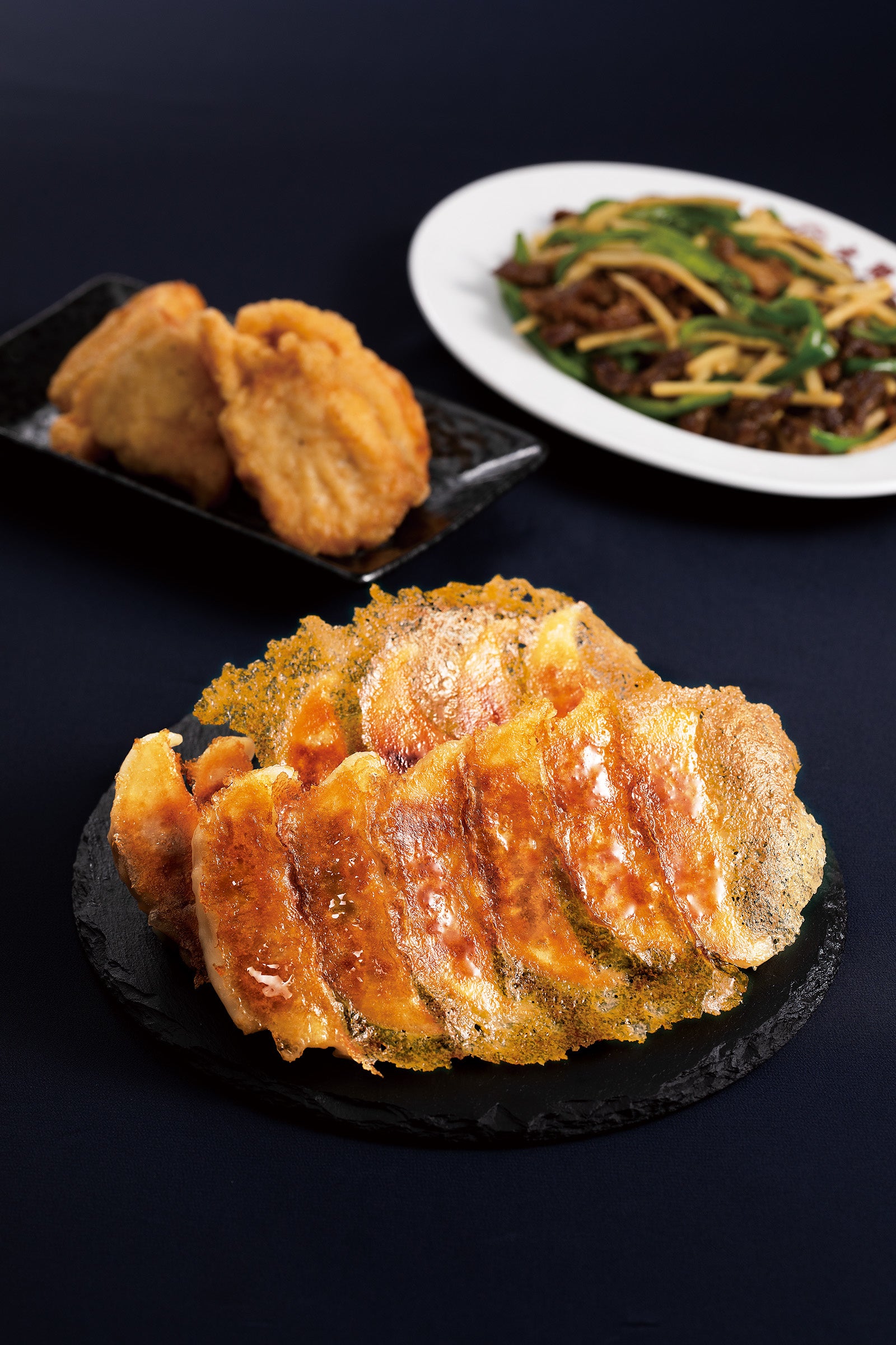 ニンニクの量を「大阪王将 羽根つき餃子」の2倍に増量。肉量も大幅アップし、濃厚な肉の旨味やコクも存分に感じられるスタミナ満点な羽根つき餃子です。添付の岩塩を付けて食べると、素材の旨味がより引き立ちます。2022年3月にリニューアルし、ラードとニンニクを炊き込んで作った黒マー油を使用することなどにより、さらにダイナミックな味わいとなっています。具材は、全て国産品を使用しております。