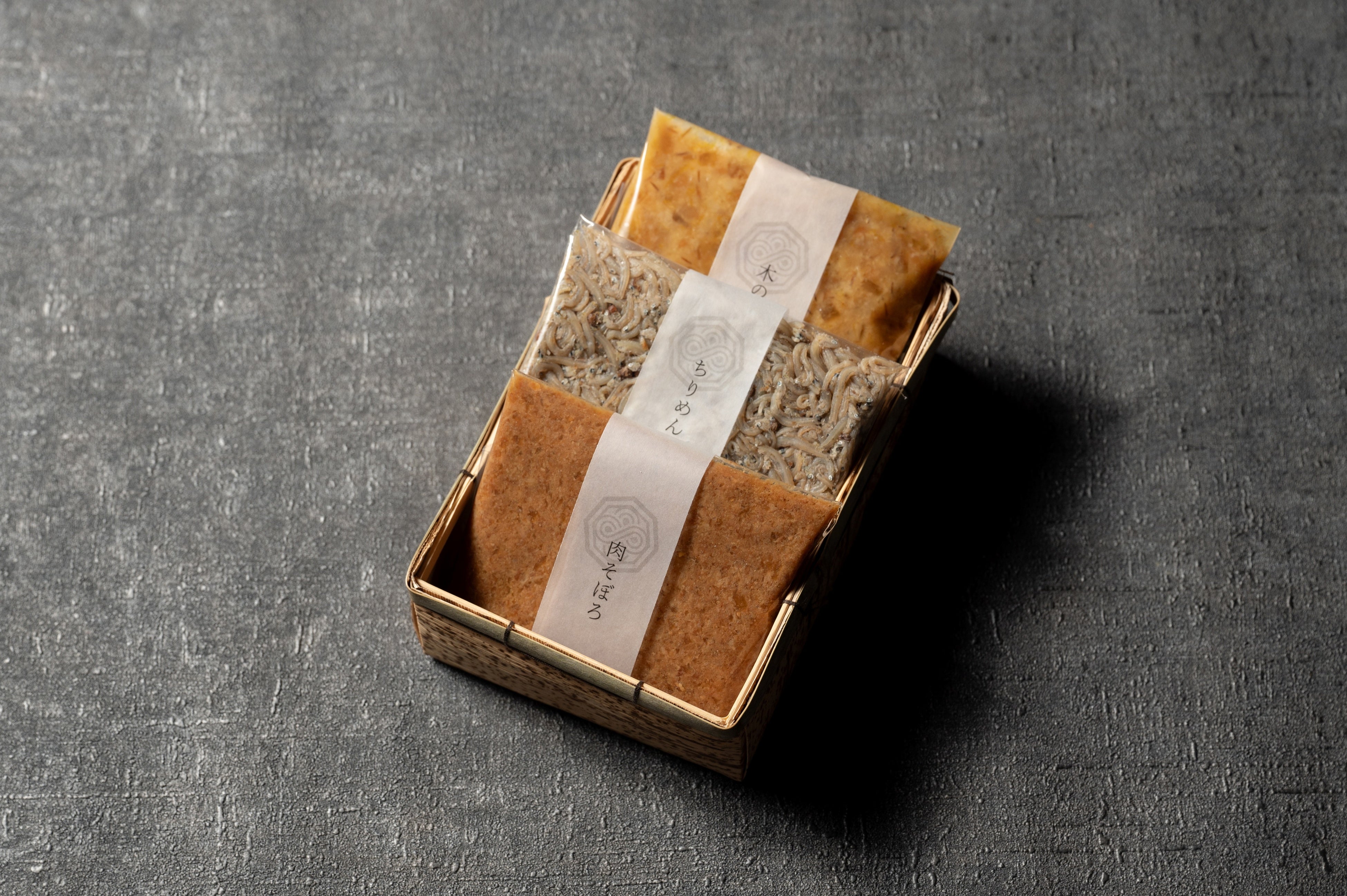 <内容> 肉そぼろ・ちりめん山椒・四季の味噌(季節により内容が異なります。)