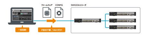 『SWX2220-10NT』『SWX2221P-10NT』では、無償のPCアプリケーション「Yamaha LAN Monitor」の最新バージョン(2022年3月より提供予定)をご利用いただくことで、個別にIPアドレスの設定をすることなく、複数台のスイッチのCONFIG管理やファームウェアの一括更新を実現し、キッティング作業の負荷を大幅に軽減します。他の当社スイッチ製品のラインアップでも順次対応する予定です。