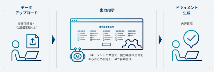 定型文書の作成や校正に手間がかかる、社内のナレッジを活用できていない、といった日常業務での課題を解決します。