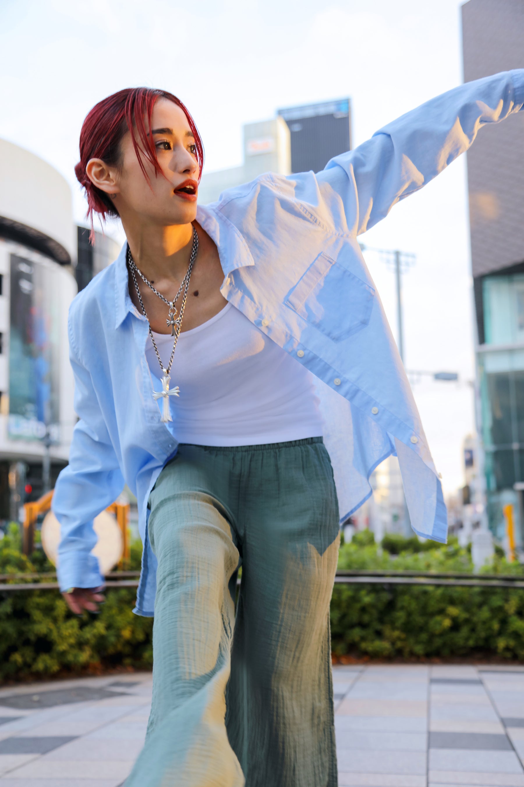 キャストは最旬のリネンやリネンブレンド素材、ガーゼアイテムを取り入れたスタイルを着こなし、EXILE NAOTOさんはコットンリネン素材のシャツとプルオンのリネンパンツを合わせたオリーブとベージュトーンのスタイルを披露。YURINOさんは、ブルーのリネンシャツにガーゼ素材のワイドレッグパンツを合わせエフォートレスなルックに。BBOY SHOSEIさんは、ストライプ柄の半袖リネンシャツにトレイルパンツをセレクトし、ブレイクダンスを踊るときでも動きやすいストリートスタイルで個性を表現。現在中学生のBMXライダー小澤美晴さんは、クロップドのリネンシャツにブラックのイージーパンツを合わせて、動きやすさとトレンド要素をミックスさせたクールな着こなしになっています。