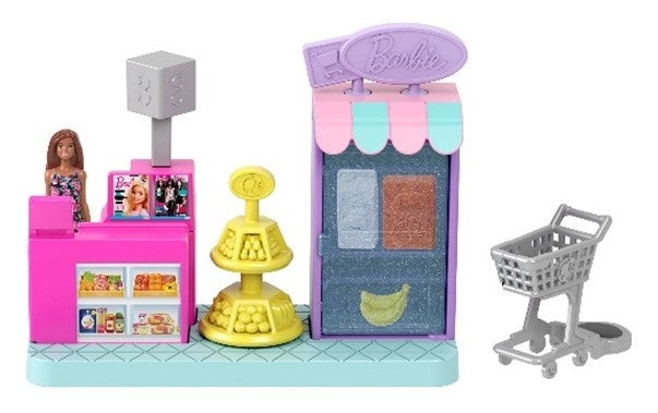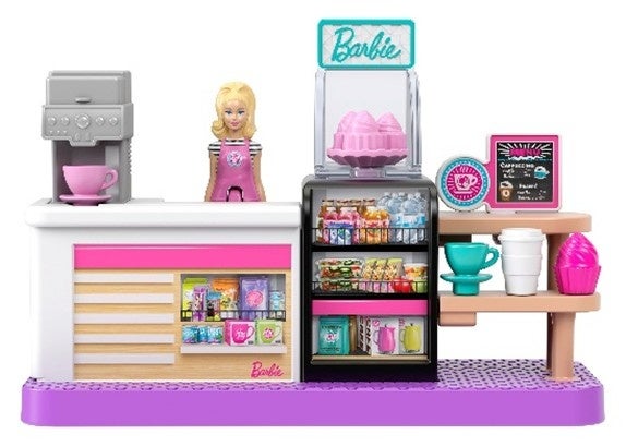 お店とマイクロドール、小物がセットになったプレイセットが新登場です。集めて楽しめるだけではなく、ハート形のくぼみにマイクロドールを固定でき、小物を並べられたり、ドアなど小さなパーツを動かすことができるので、ごっこ遊びも可能。ミニチュア雑貨が好きな大人から子供までおすすめの商品です。同じミニバービーランドシリーズのマイクロドールやハウスと一緒に遊ぶこともできます。