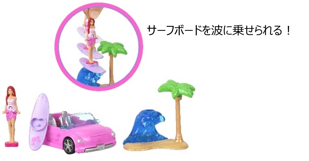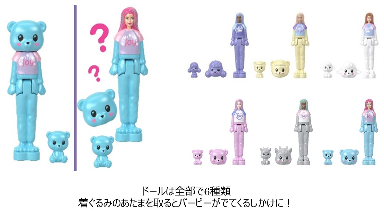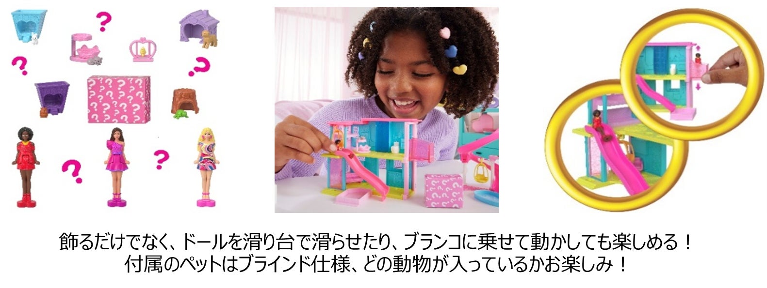 上記の他、ケースのデザインとマイクロドールの種類を変えて新たに登場する、サプライズ仕様のコアドールも「キュートアップアソート」、「カラーリビール」、「ポップリビール」、水の温度で色が変わる仕掛け付きの乗り物「きゅうきゅうしゃ」「コンバーチブル/サーフィン」、付属のペットがサプライズ使用の「ドリームハウス(ブルー・イエロー)」も新たに加わり、沢山集めてよりミニバービーの世界観を楽しめます。