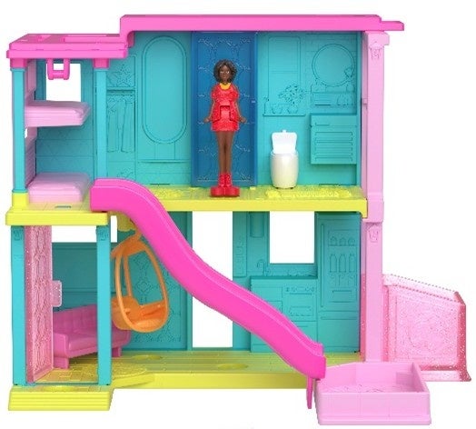 ミニバービーランドシリーズのハウスとマイクロドール、ペットのセット!ハウスにはミニバービーランドシリーズのドールを固定できるハート型のくぼみや滑り台、可動式のエレベーターやドア、ベッドなどギミックが沢山!付属のペットは開封するまで何が入っているかわからないサプライズ仕様。