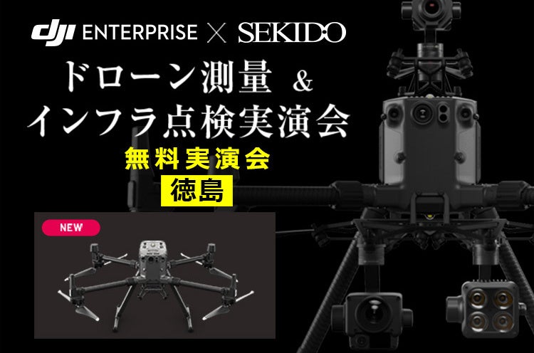 日本初のDJI正規販売代理店である株式会社セキド(本社:東京都港区、代表取締役:⼤下貴之)ではセキド 徳島中央(運営会社:株式会社矢野商店)と共同で、2023年7月7日(金)14時より徳島県美馬市にて、産業向け業務用ドローンを使った構造物点検と測量の無料実演会を開催いたします。最新のDJI産業用フラッグシップドローン「MATRICE 350 RTK(マトリス 350 アールティーケー、以下 M350 RTK)」と対応カメラモジュール「Zenmuse(ゼンミューズ) H20N/L1/P1/H20T」、小型でパワフルな産業用ドローン「DJI MATRICE 30 T(ディージェイアイ マトリス 30 ティー)」、高い携帯性のコンパクトモデル「DJI MAVIC 3 ENTERPRISE(ディージェイアイ マビック 3 エンタープライズ)」の性能を、測量・点検を模したデモフライトでご確認いただき、撮影データをお持ち帰りいただける、導入検討中の事業者に最適なイベントです。補助金・助成金を活用した導入を検討されているお客様も、ぜひこの機会にご参加ください。