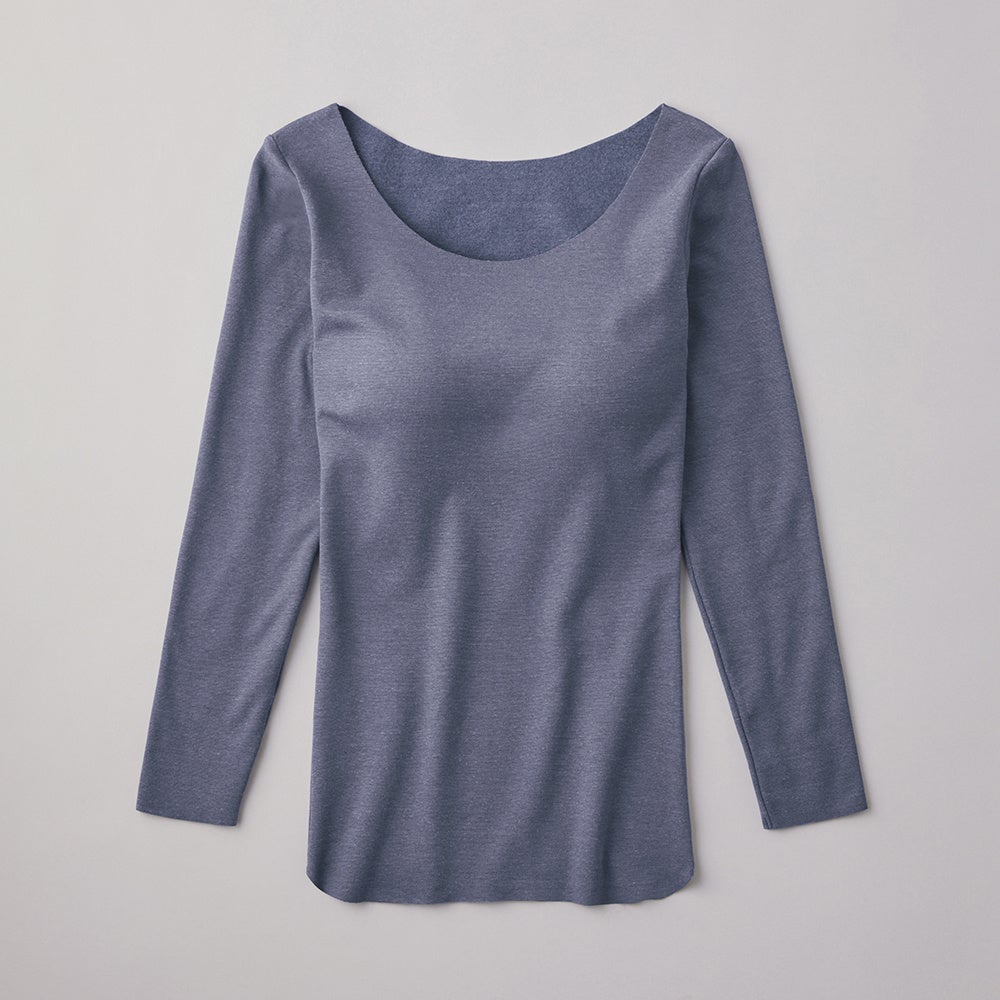 「Fitte」は、オーガニックコットン混のカットオフ素材とグンゼ独自の接着技術と縫製を組み合わせた立体的な 胸のカタチと肌へのやさしさにこだわった人気のインナーグループです。この度発売した「Fitte Warm」は、肌側が 起毛の発熱オーガニックコットン混のカットオフ素材を使用し、左右一体化したモールドカップでバストラインを整えるあったかインナーです。カップ部は、軽量で通気性のよいメッシュ生地なので蒸れにくく、暖房の効いた室内などでの快適性にもこだわりました。さらに、生地端がきりっぱなしのカットオフ素材は縫い目が少なく、下着のラインがアウターにひびきにくいので、重ね着する秋冬のおしゃれもすっきり楽しめます。8分袖ブラトップと9分丈ハイウエストレギンスをラインアップ。8分袖ブラトップは、ネックライン広めのアウターにも合わせやすいように襟ぐり広めタイプもご用意しました。