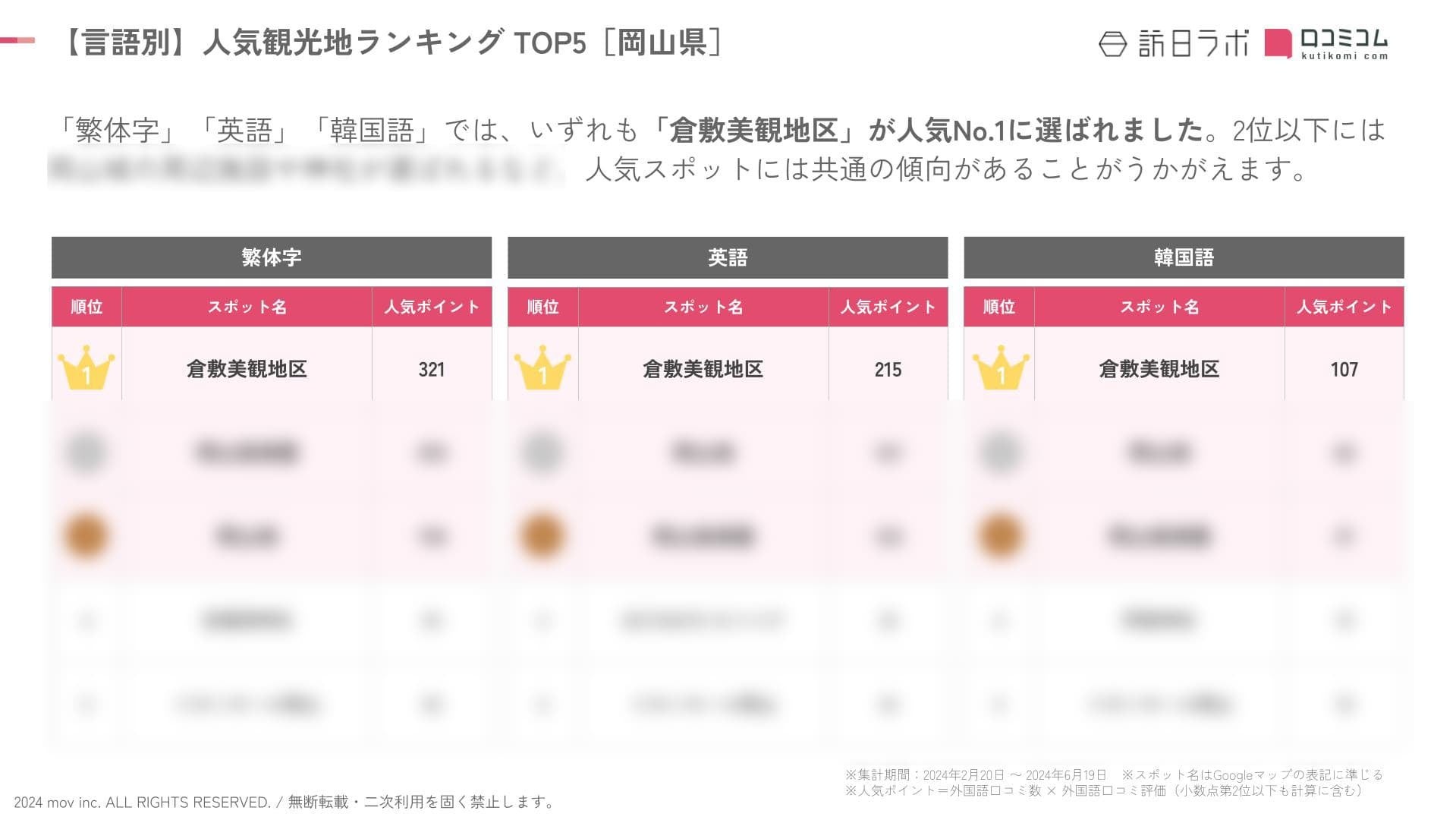 【独自調査】2024最新:外国人に人気の観光スポットランキング[岡山県編]1位は2年連続で「倉敷美観地区」!| インバウンド人気観光地ランキング #インバウンドMEO