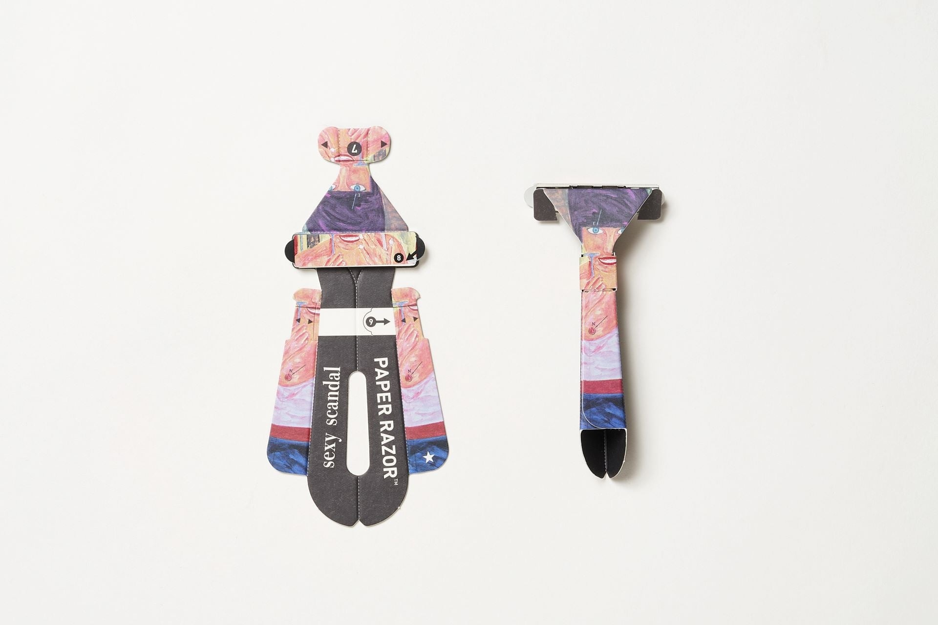 描いた作品が60年後に立体化されて商品になるなんて、まったく思いもよらないことでした。カミソリと言っても小さく、紙でできており、それはそれで非常にキッチュな感じがして面白く、言い方を変えれば「彫刻」と呼んでもいいくらいです。