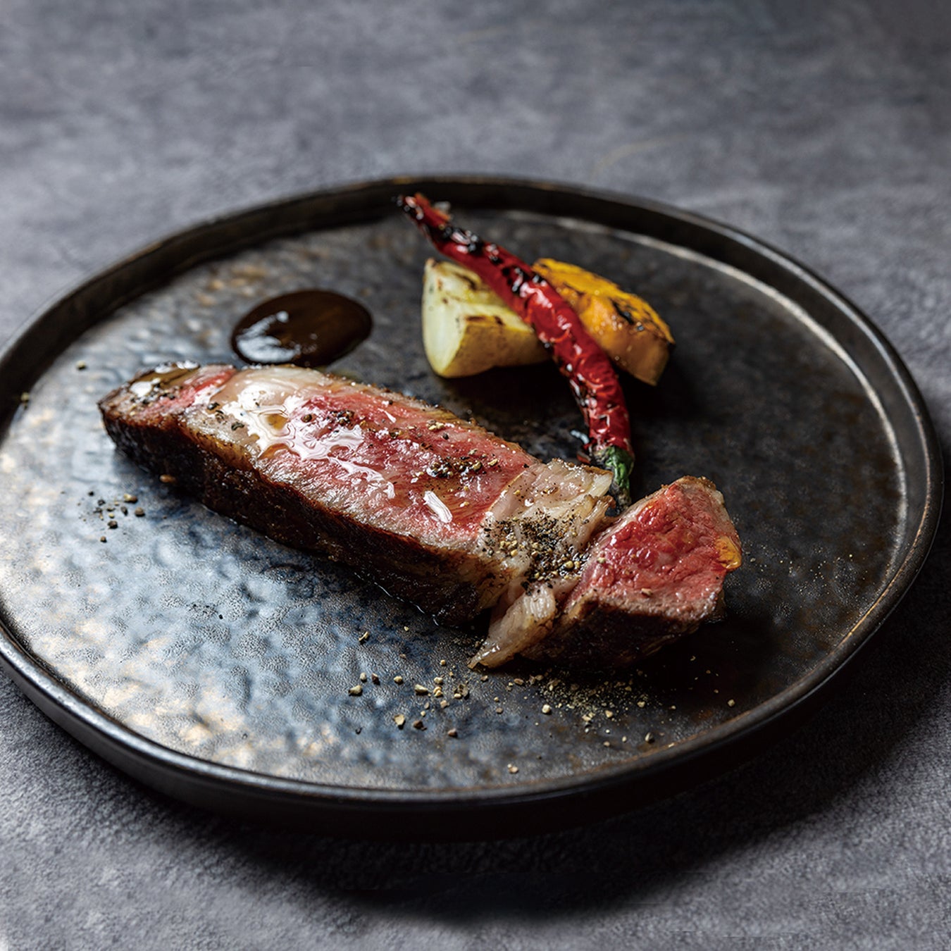 また、流通量が非常に少ない幻の牛肉『極上 なにわ黒牛』も使用し、一年を通じて最高の炭火ステーキをお届けいたします。