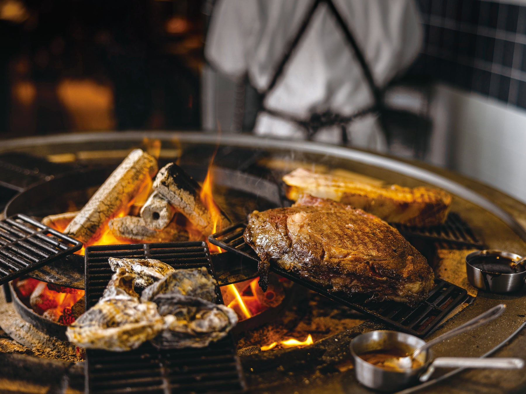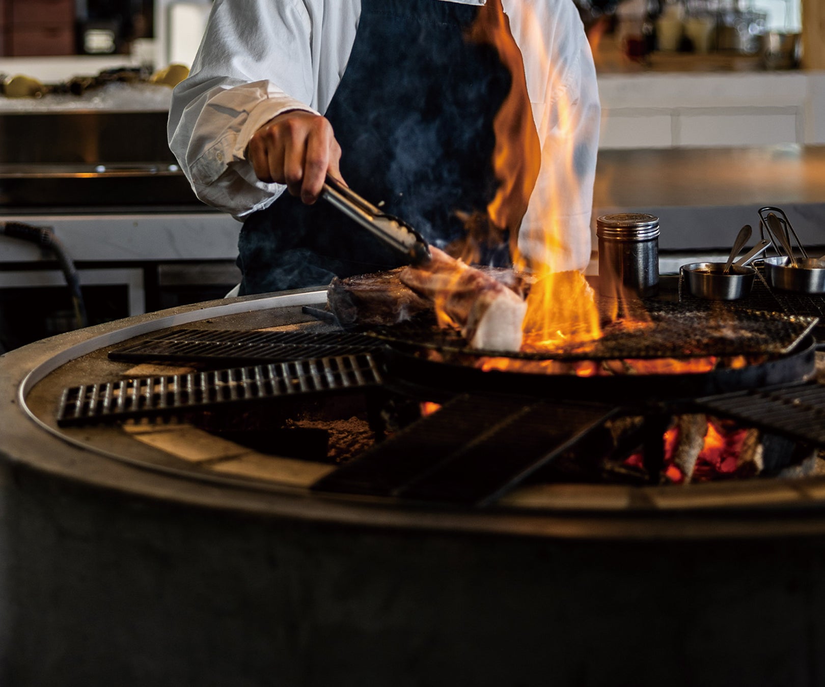 ディナータイムは、シンボリックな炭火台で焼き上げる炭焼きイタリアンと、全国から届く旬の生牡蠣を堪能する【肉イタリアン&オイスター】の新業態をお楽しみいただけます。
