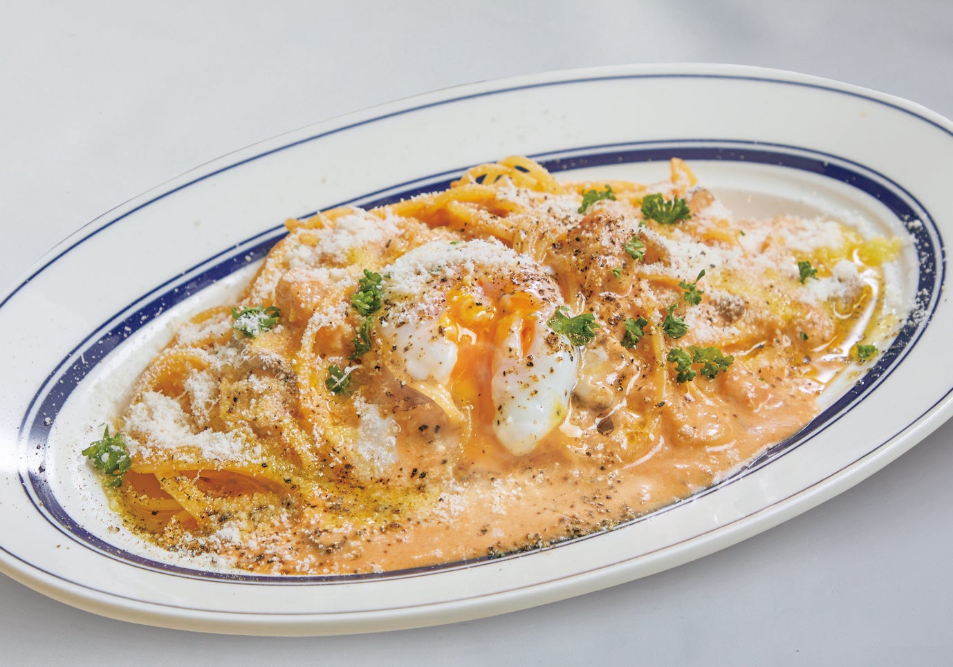 ・銘柄玉子と塩漬けバラ肉のカルボナーラ