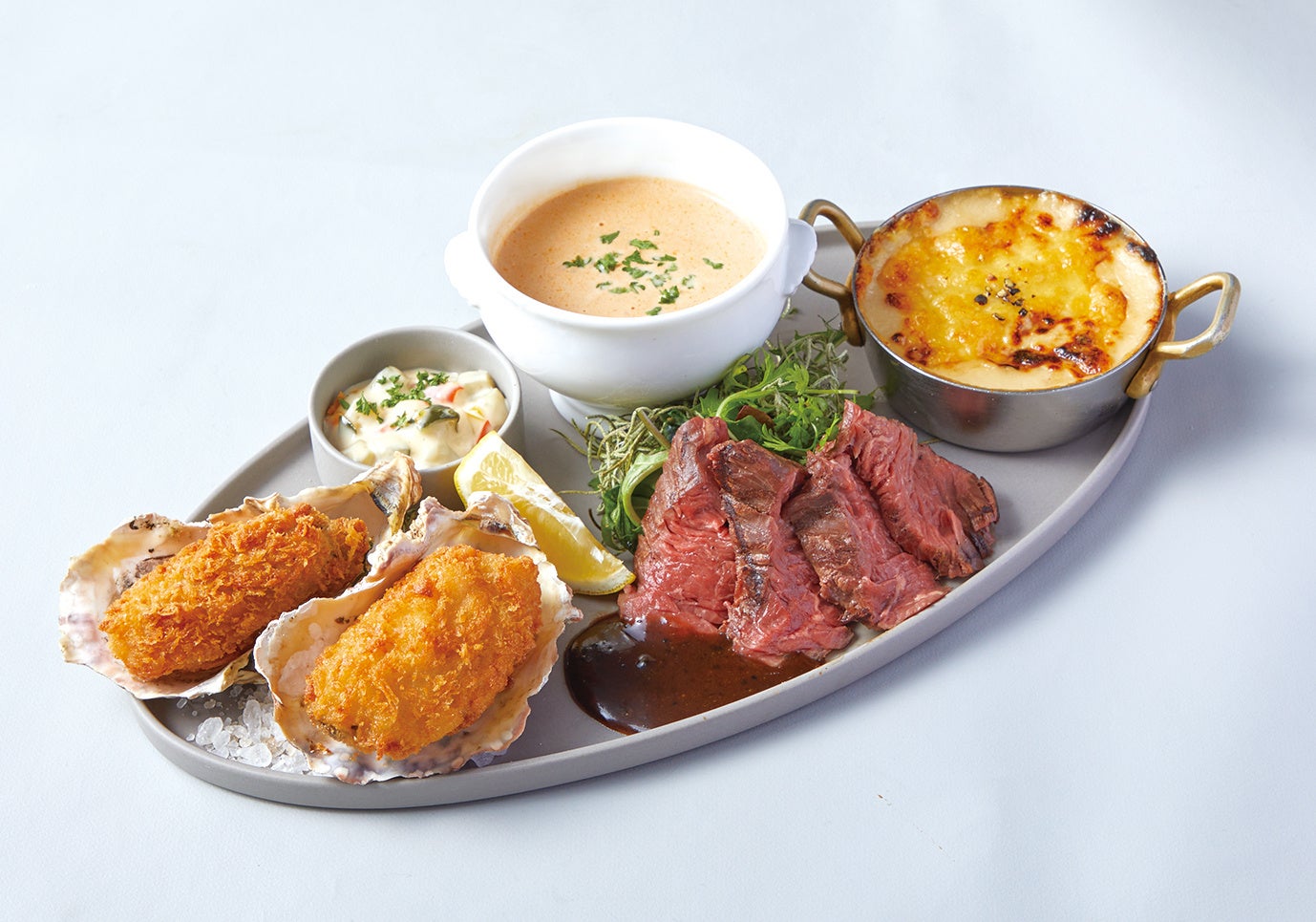 牛ハラミステーキ/ カキフライ/ オマールビスク/グラタン
