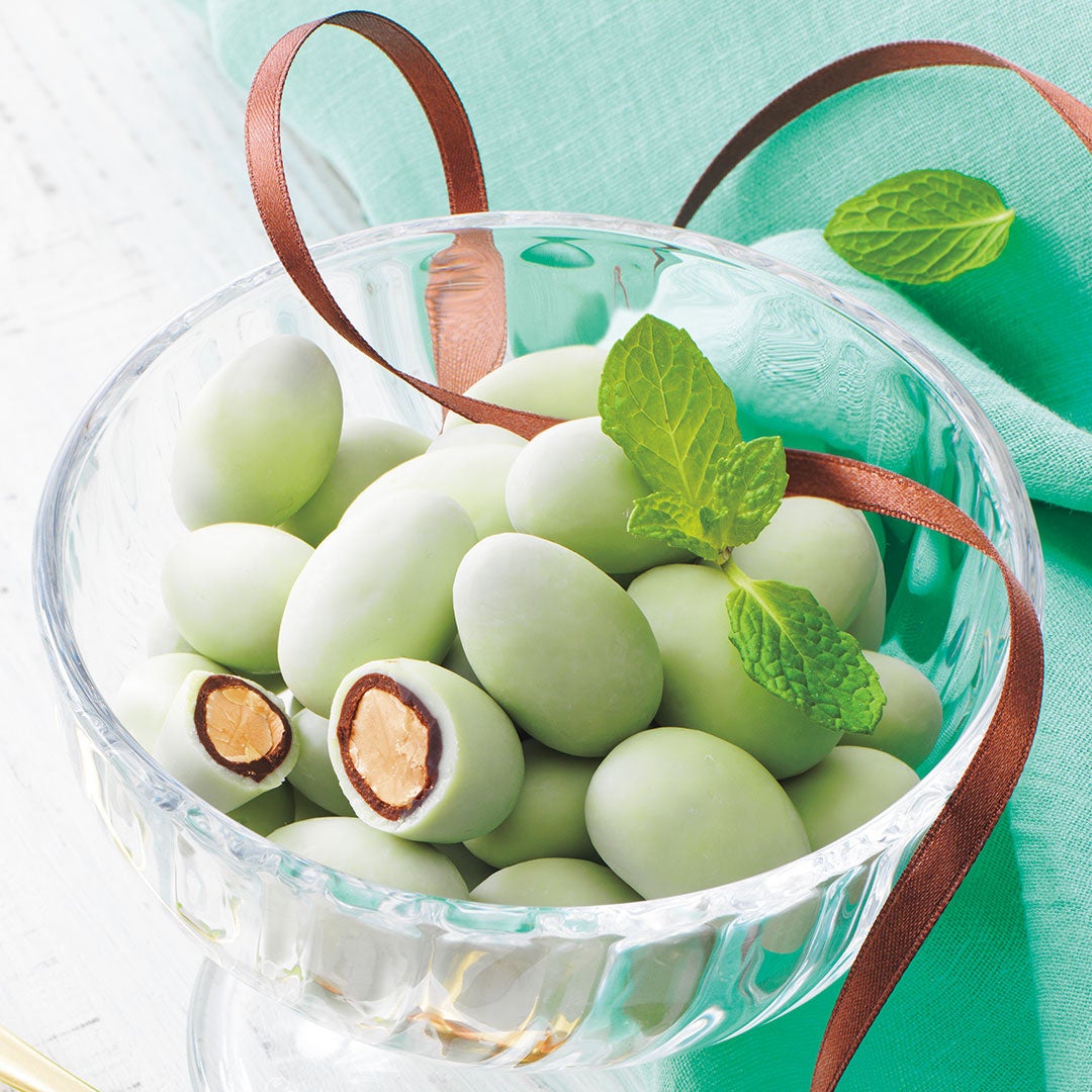 ほろ苦いチョコレートとミントが香るホワイトチョコレート、2層のチョコレートでカリフォルニア産アーモンドを丸ごと一粒コーティング。カリッと香ばしいアーモンドの風味を、カカオのビターなテイストとすっきりとさわやかなミントの香りが包み込みます。