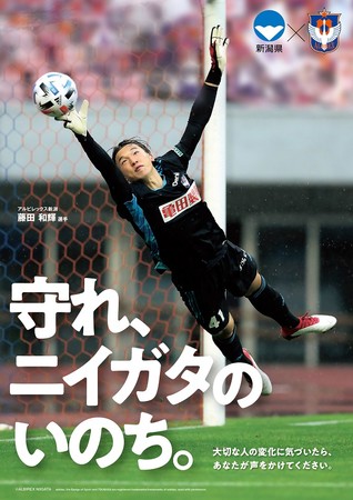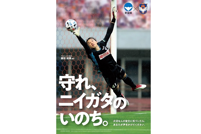 「守れ、ニイガタのいのち。」をキャッチフレーズに、GK藤田和輝選手をビジュアルに起用。新潟県内の出先機関にリーフレット・カードなどの告知物を配布。