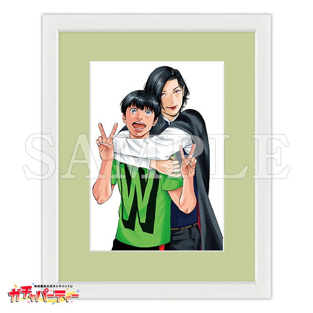 その他、くじを10枚購入するごとにランダムでミニ缶バッジが当たる[10連購入特典]や、購入者の中から抽選で10名に奥嶋ひろまさ先生直筆のサインが入った高精細複製原画が当たる[抽選購入特典]も有り。