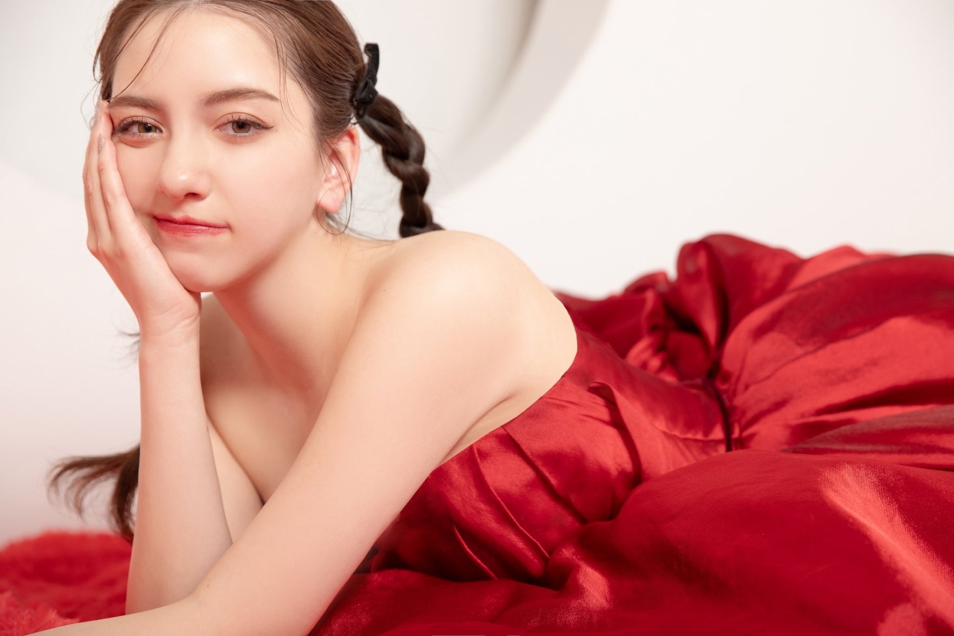真っ赤なドレスで愛らしさが際立つ成人新ビジュアルを提案いたします。