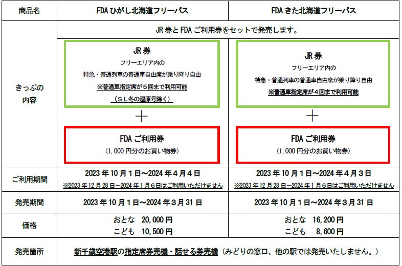 JR北海道・FDAタイアップ商品「FDAひがし北海道フリーパス」「FDAきた北海道フリーパス」を継続販売します!