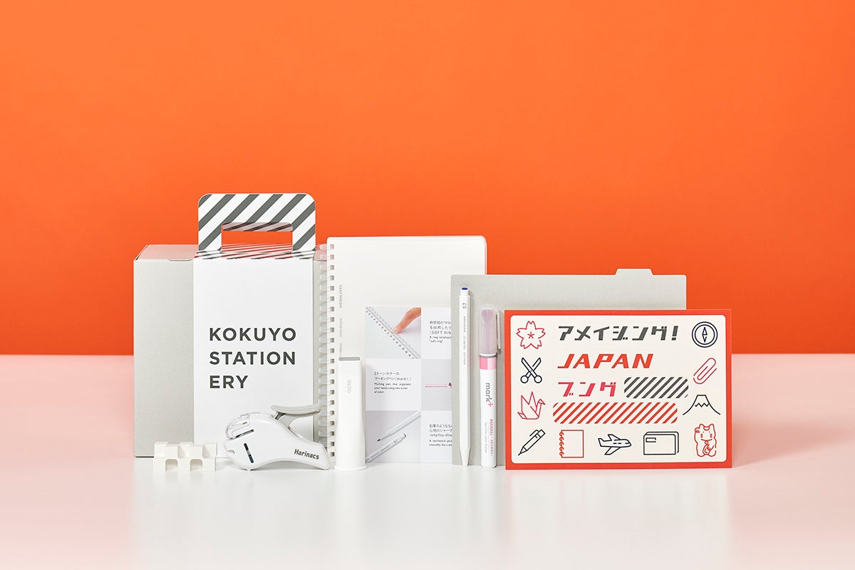 国内外で人気のあるユニークな文具をセレクトし、特注サイズのファイルボックスに詰めました。限定ステッカー付き。
