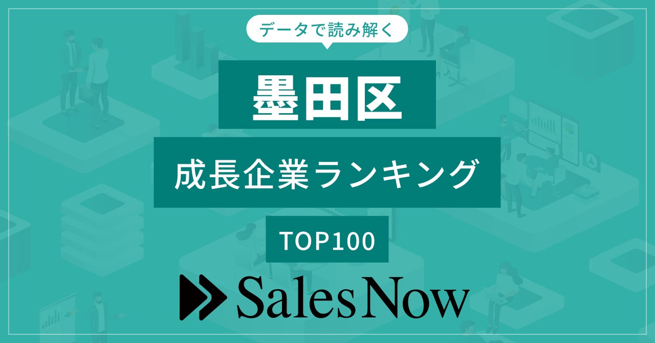 「誰もが活躍できる仕組みをつくる。」をミッションに掲げ、セールスチームの武器となるデータベース「SalesNow」を展開する株式会社SalesNow(本社:東京都渋谷区、代表取締役:村岡功規、以下「SalesNow」)は、国内540万社の企業情報を完全網羅した日本最大級のデータベース「SalesNow DB」より、墨田区に本社を置く企業の成長企業ランキングTOP100を調査しました。