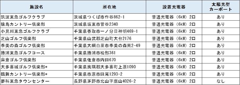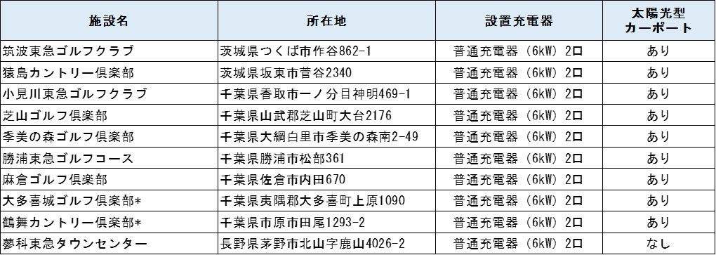※大多喜城ゴルフ倶楽部、鶴舞カントリー倶楽部の普通充電器は、2024 年 3 月以降に利用可能予定