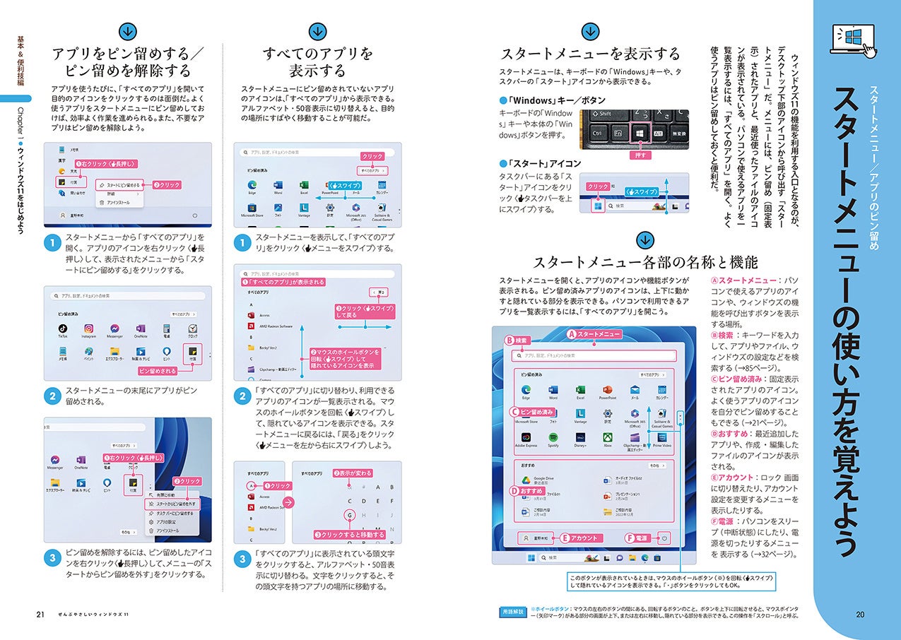 習熟度や目的に合わせて読み進めていけるため、初心者でも迷わずにウィンドウズ11を搭載した最新パソコンを使いこなせるようになれます。