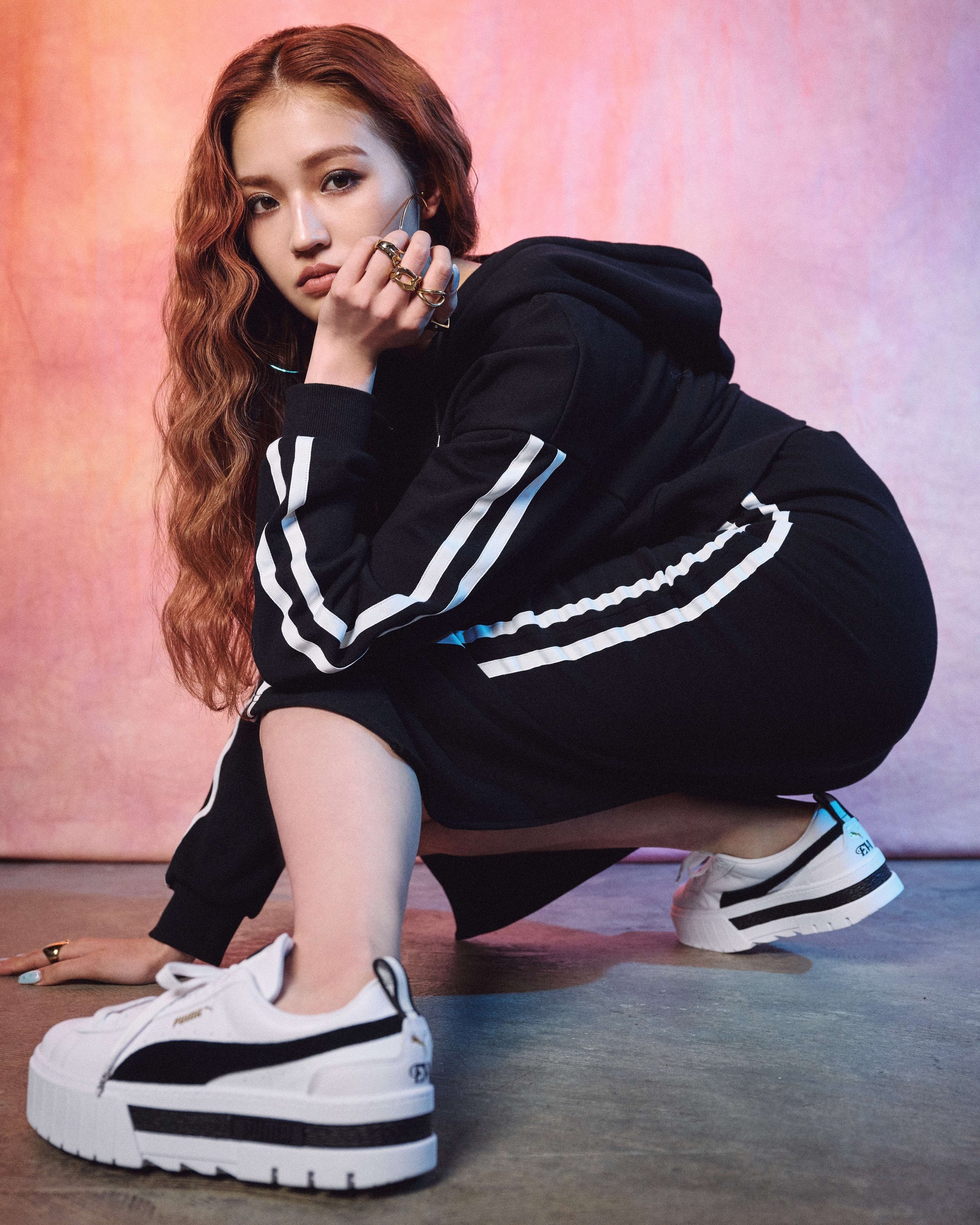 タウンユース使いのできるスウェットセットアップ、コラボレーションロゴが大胆に施されたニットカーデ、双方のブランド名がグラフィックプリントに隠されているロンT、ルーズなサイズ感が今っぽいビーニー、更には、PUMAの人気モデル”MAYZE”にEVRISとatmos pinkのコラボレーションロゴがレーザープリントされたスペシャルデザイン(付属のシューレースにもコラボレーションロゴが施されています)も登場♪