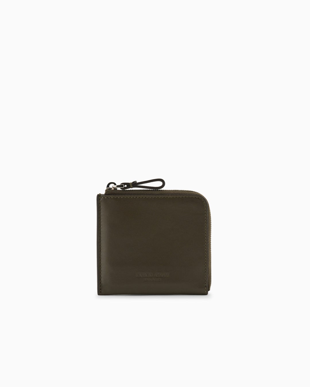 メンズからはラグジュアリーなナッパレザーを使用した、コンパクトなラウンドジップウォレットをご紹介します。コンパクトなサイズでありながら、内側に4つのカード用ポケットと、紙幣用コンパートメントを備えています。前面にあしらわれたGiorgio Armaniのホットスタンプのロゴがさりげなく彩りを添えます。