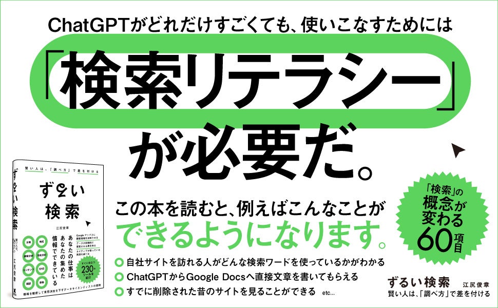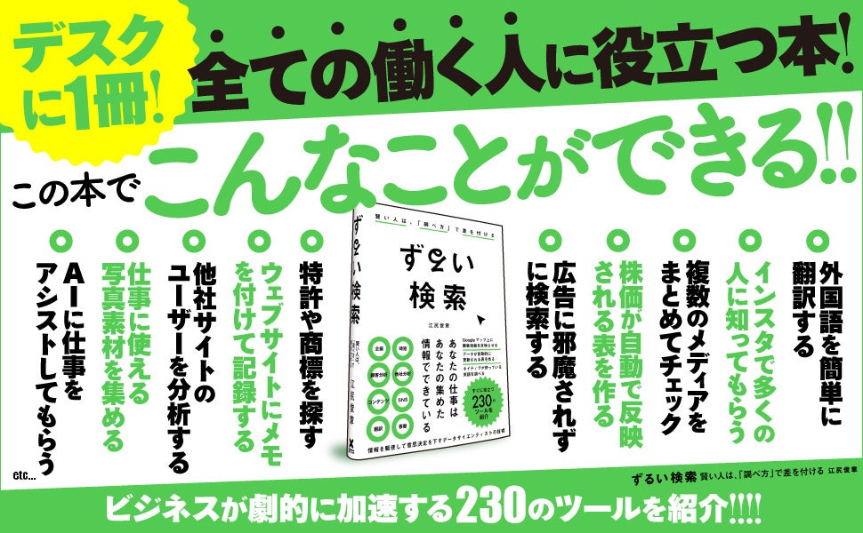 【1万5000部突破!】Google以外の検索ツール、使えていますか? 周りに差をつける情報収集テクが満載『ずるい検索 賢い人は、「調べ方」で差を付ける』6刷重版を実施!