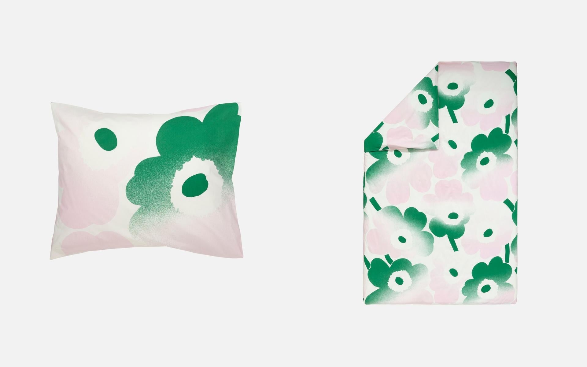 本コレクションには、春の芽吹きを思わせる柔らかなグリーン、淡いピンク、春の空を彷彿とさせるブルートーンを基調としたアイテムが登場します。テーブルウェアには、人気のウニッコ(Unikko)を象ったプレートやピッコロ(Piccolo)のマグカップなどがラインナップ。また、キッチンアイテムとして、日本人プリントデザイナー 脇阪克二のアーカイブプリント グリーングリーン(Green Green)のエプロンやミトンも揃います。さらに、新しい1年の始まりを心地よく迎えられるよう、リフレッシュに最適なベッドアイテムやウニッコ型バスマットなどのバスグッズも充実しています。
