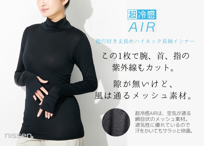 商品名:超冷感AIR 指穴付き丈長めハイネック長袖インナー(接触冷感・吸汗速乾・UVカット)