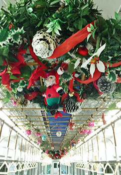 ※4両編成の内、中央2両の天井に装飾します。