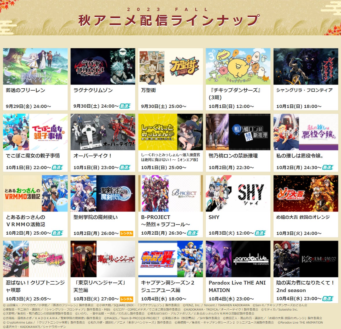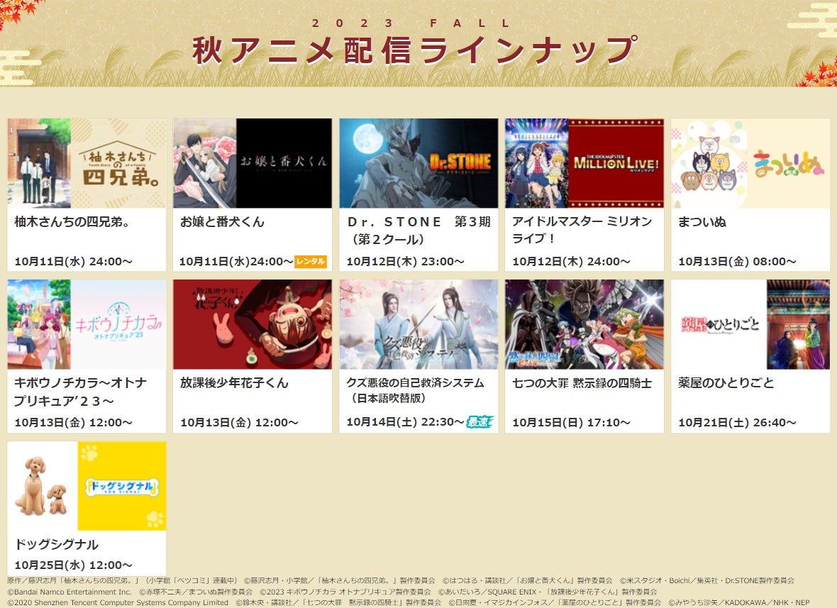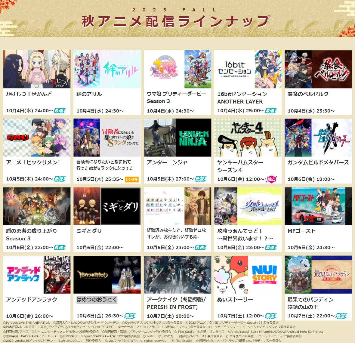 2023秋アニメ・配信ラインナップ:https://animestore.docomo.ne.jp/animestore/CF/fall