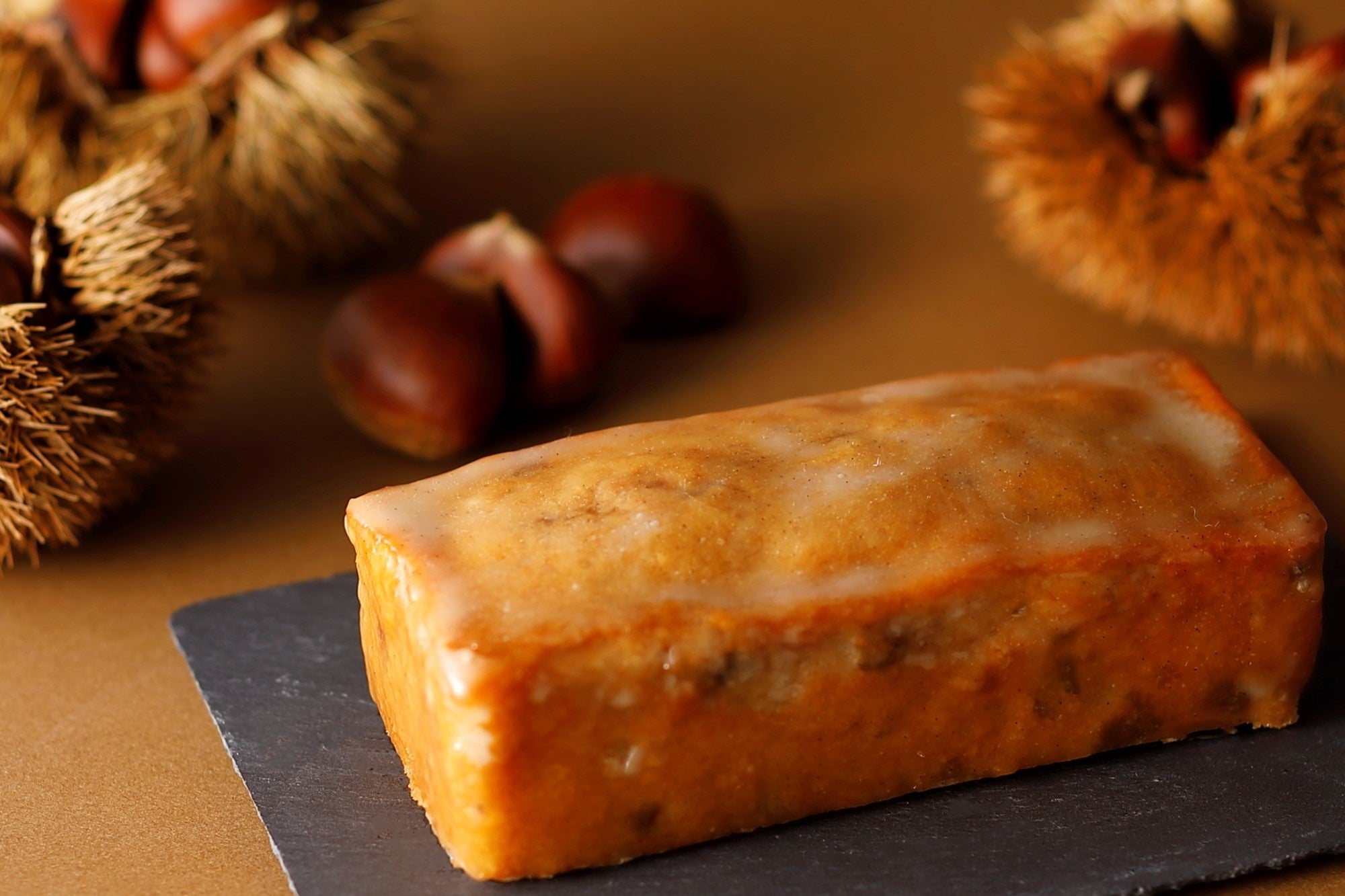 ラム酒の効いたグラスアローで丁寧に仕上げた栗の香り漂う大人のマロンケーキ。フランス産のマロンペーストとマロンクリームを生地と合わせ、栗本来のしっかりとした風味と香りが楽しめるようカットした渋皮栗を一緒に焼き上げました。仕上げには、ケーキのしっとり感を保つため、グラスアローする前にナパージュでコーティングするひと手間を加えた逸品です。ひと足早く秋の味覚をお楽しみください。