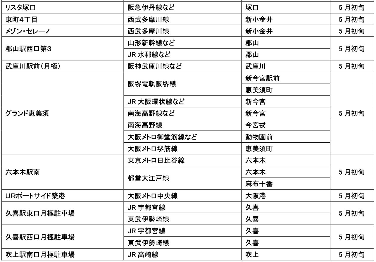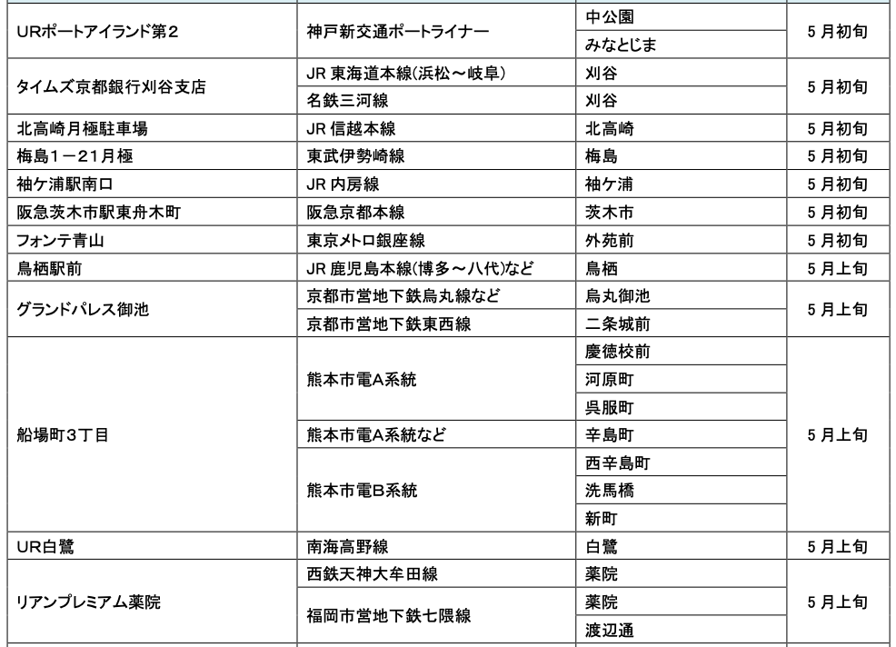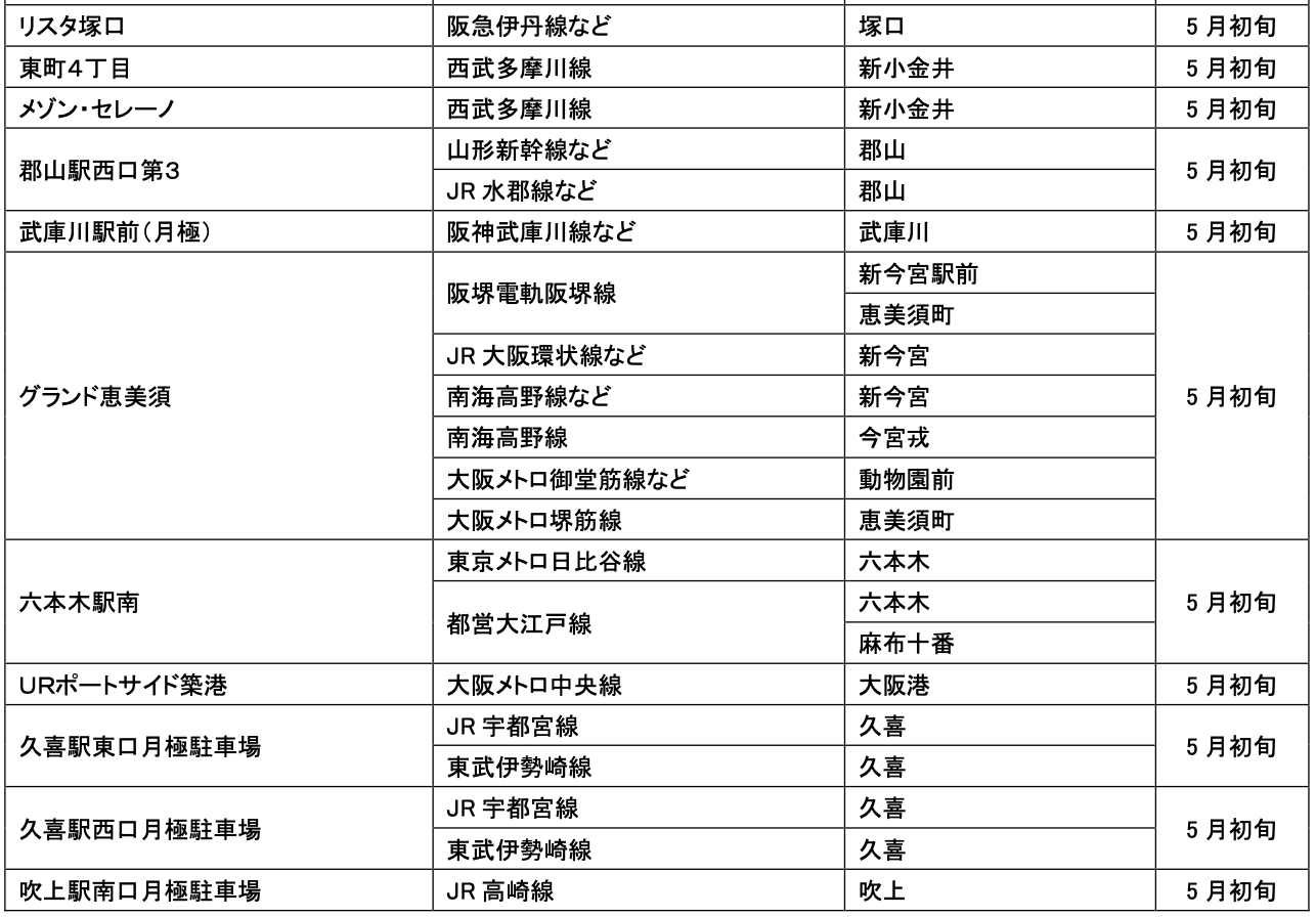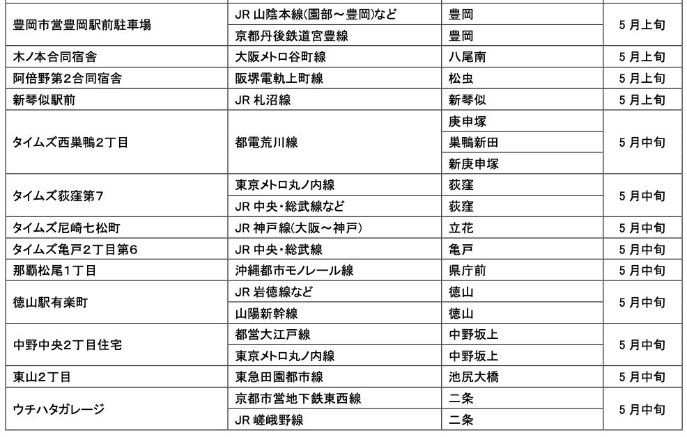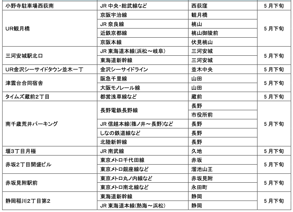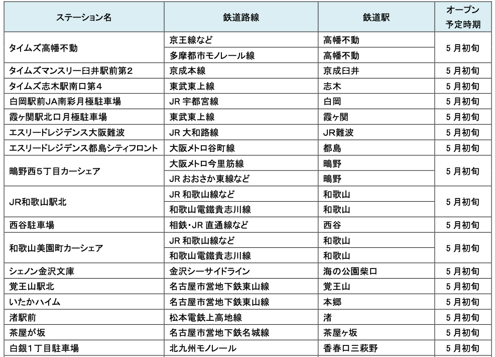 5月にオープンおよびオープン予定の「パーク&ライド」が可能な駐車場は12件、「レール&カーシェア」が可能なステーションは92件です。