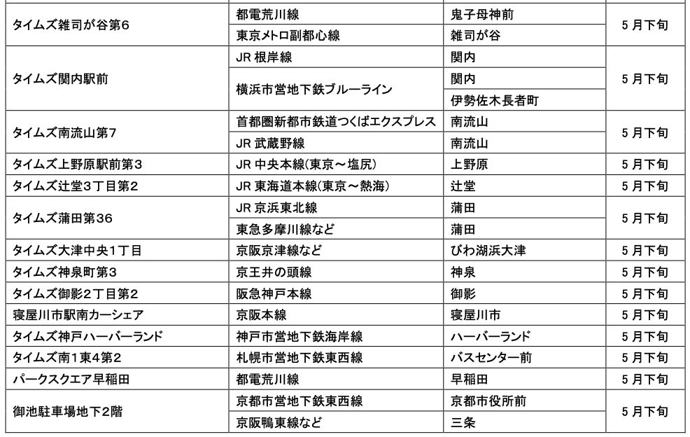 【サステナビリティアクション】パーク&ライドが可能なタイムズパーキング レール&カーシェアが可能なタイムズカーステーション 5月のオープン情報