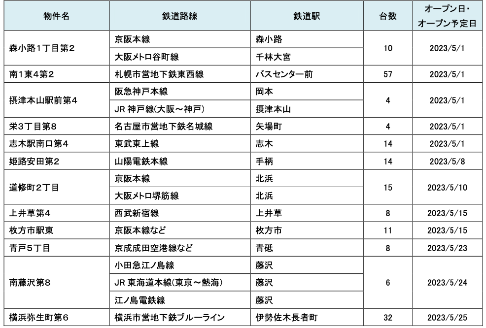 パーク24株式会社(本社:東京都品川区、社長:西川光一)は、温室効果ガスの排出量削減に繋がる移動法「パーク&ライド」および「レール&カーシェア」が可能なタイムズパーキングおよびタイムズカーステーションの2023年5月におけるオープン予定をお知らせいたします。