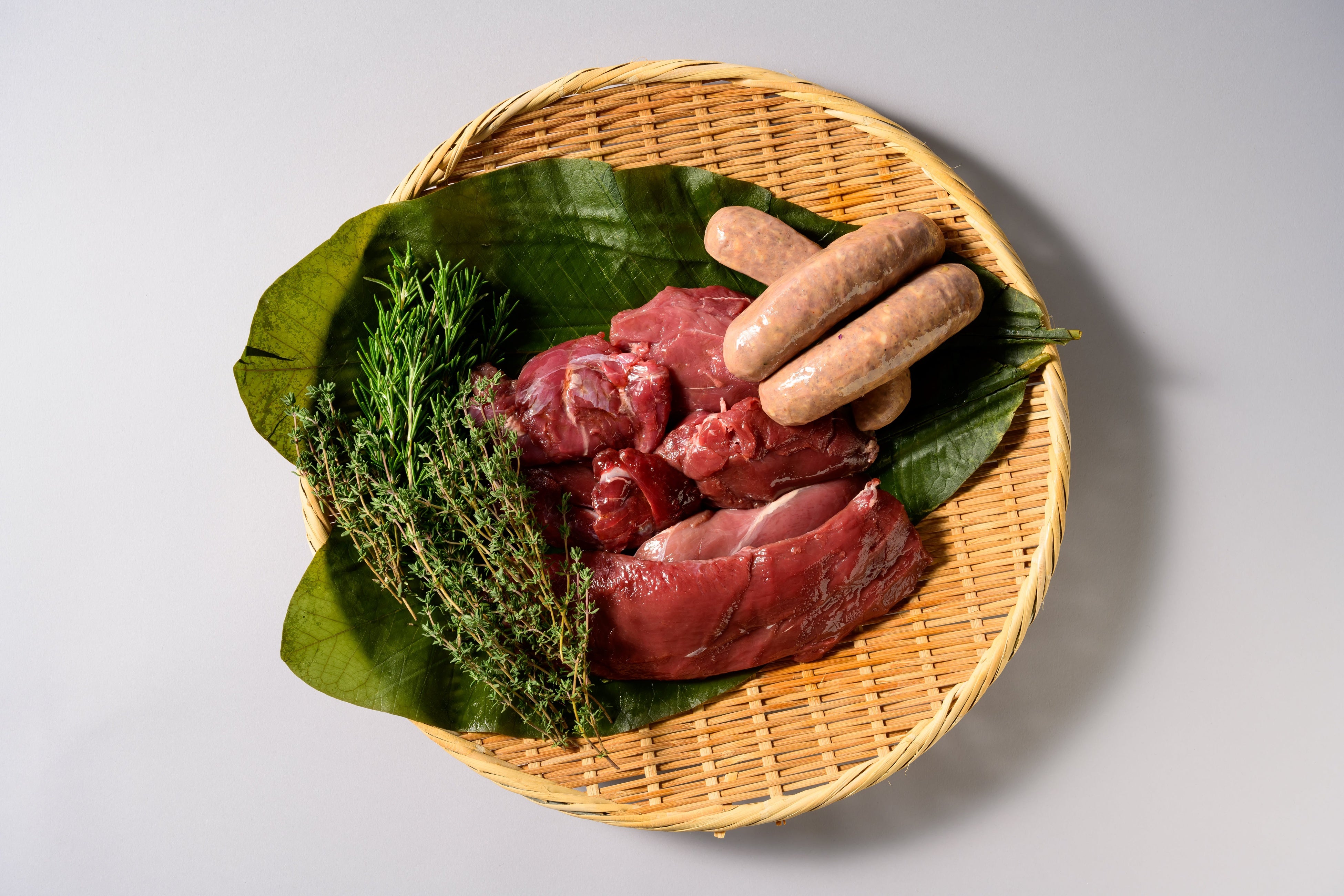 冷凍保存された鹿肉の背ロースと、当ホテルオリジナルブレンドのスパイスを、大切な方に「恩送り」としてご郵送いただけるサービスです。ご家庭で再現できるジビエの美味しいレシピが記載されたカードも添えています。大切な方の特別な1日を彩るような、新しいギフトの形をお試しください。