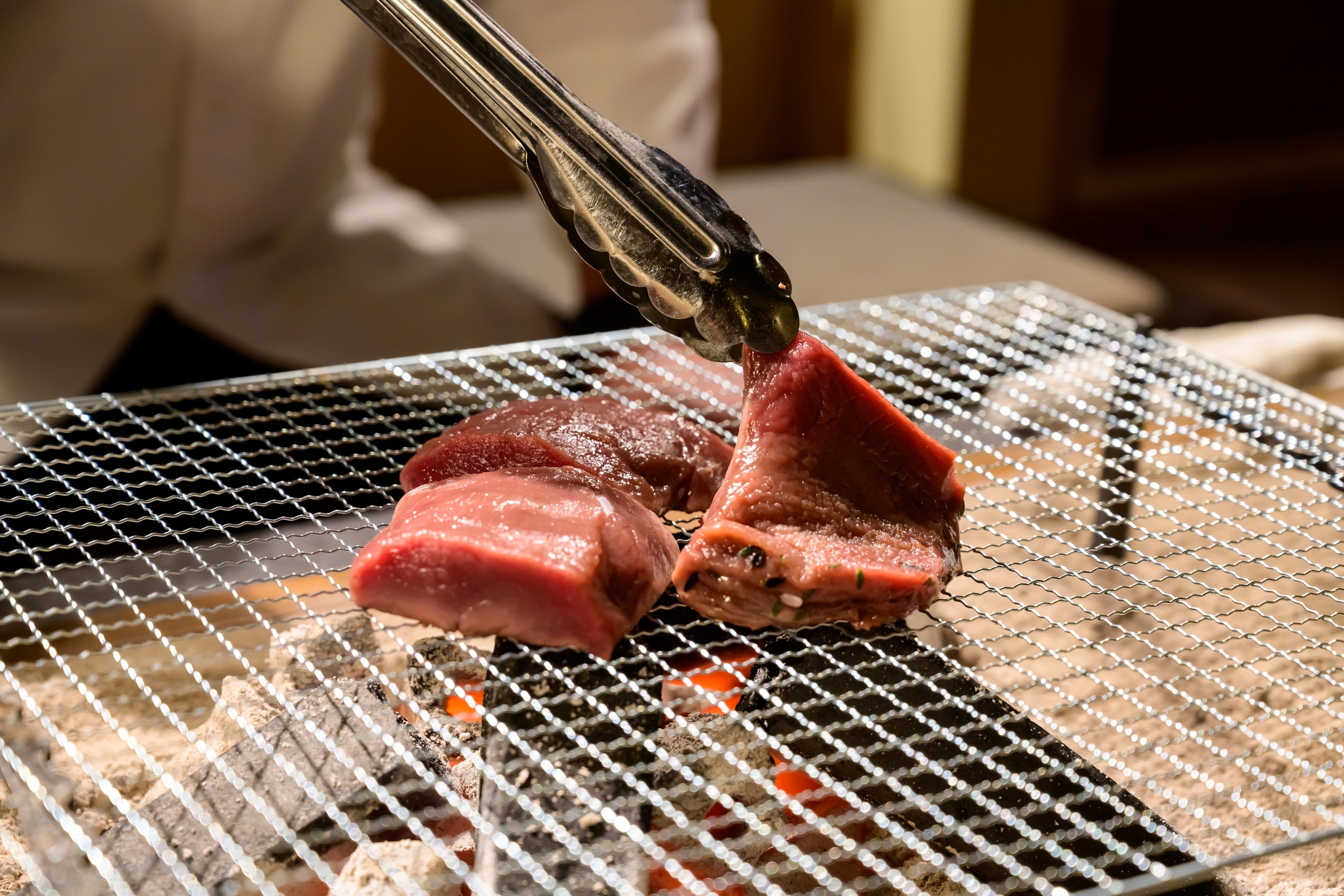 解体教室の後、精肉された鹿肉に火入れを行い、柔らかく仕上げた鹿肉のローストを試食していただきます。鹿肉は、他の食肉と比べ脂肪が少なくヘルシーな食材ですが、火入れ具合によっては固くなってしまう繊細な食材です。下味には、オリジナルブレンドのスパイスを施し、力強く淡白な鹿肉の旨みをより引き立たせます。ていねいに、ゆっくりと熱を通し、しっとりと仕上げる。猟師がお伝えする、まさに熟練の手仕事のような火入れの妙を、ご自身の手でご体験ください。