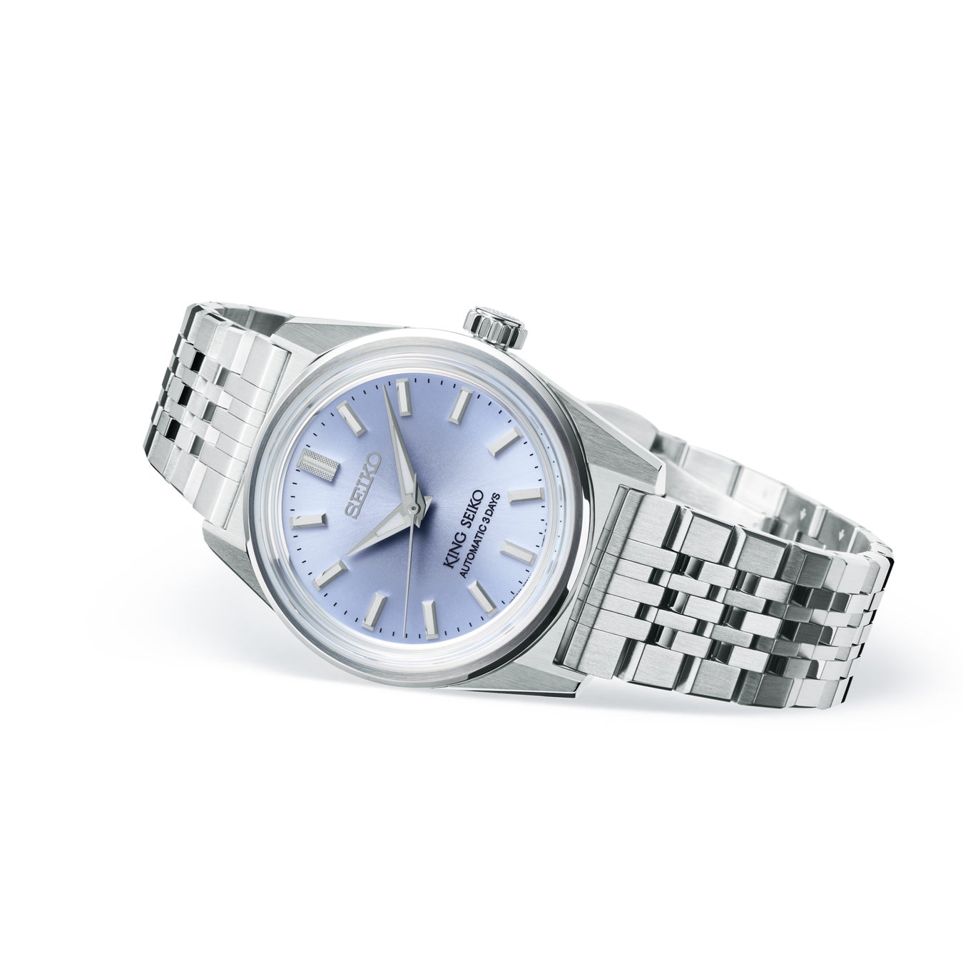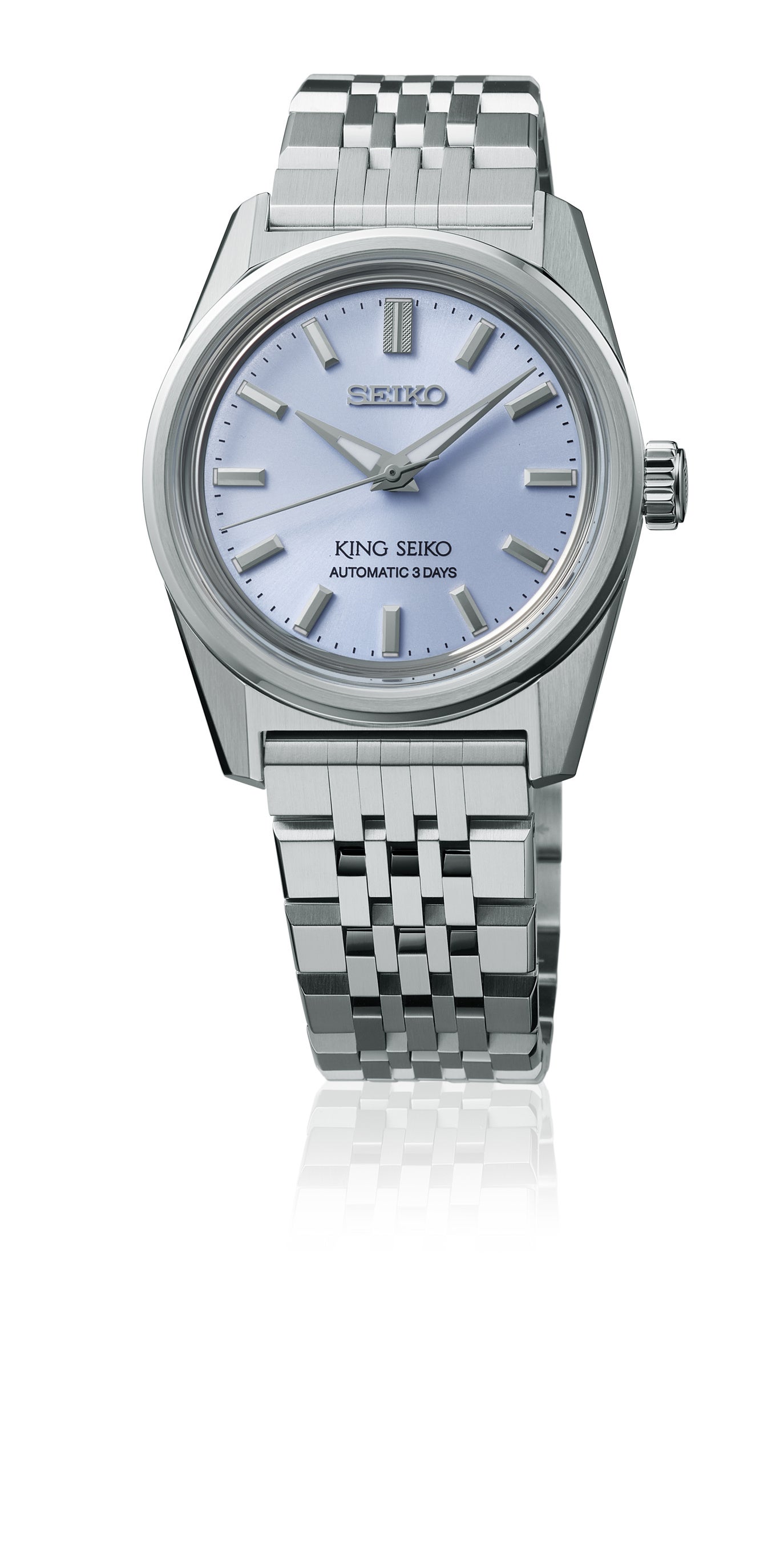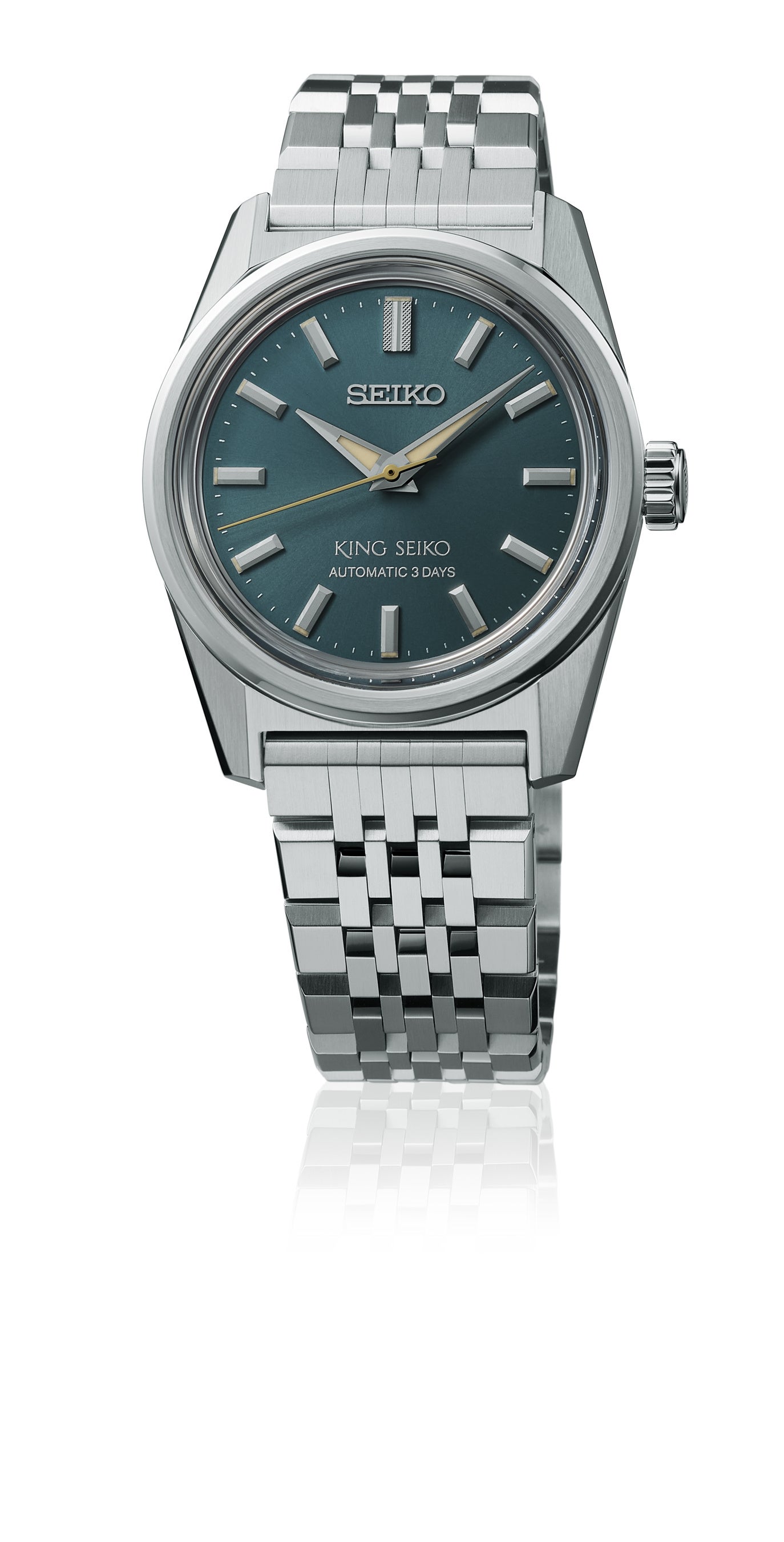 2022年のブランド復活から続く“KSK”シリーズに、シンプルな3針ダイヤルの3モデルが登場します。ケースサイズは、キングセイコーの現行モデルで最小となる36.1mmです。鏡面とヘアラインに磨き分けることで、コンパクトでありながら、“KSK”シリーズの特徴である稜線の際立つシャープなケースに仕上げました。