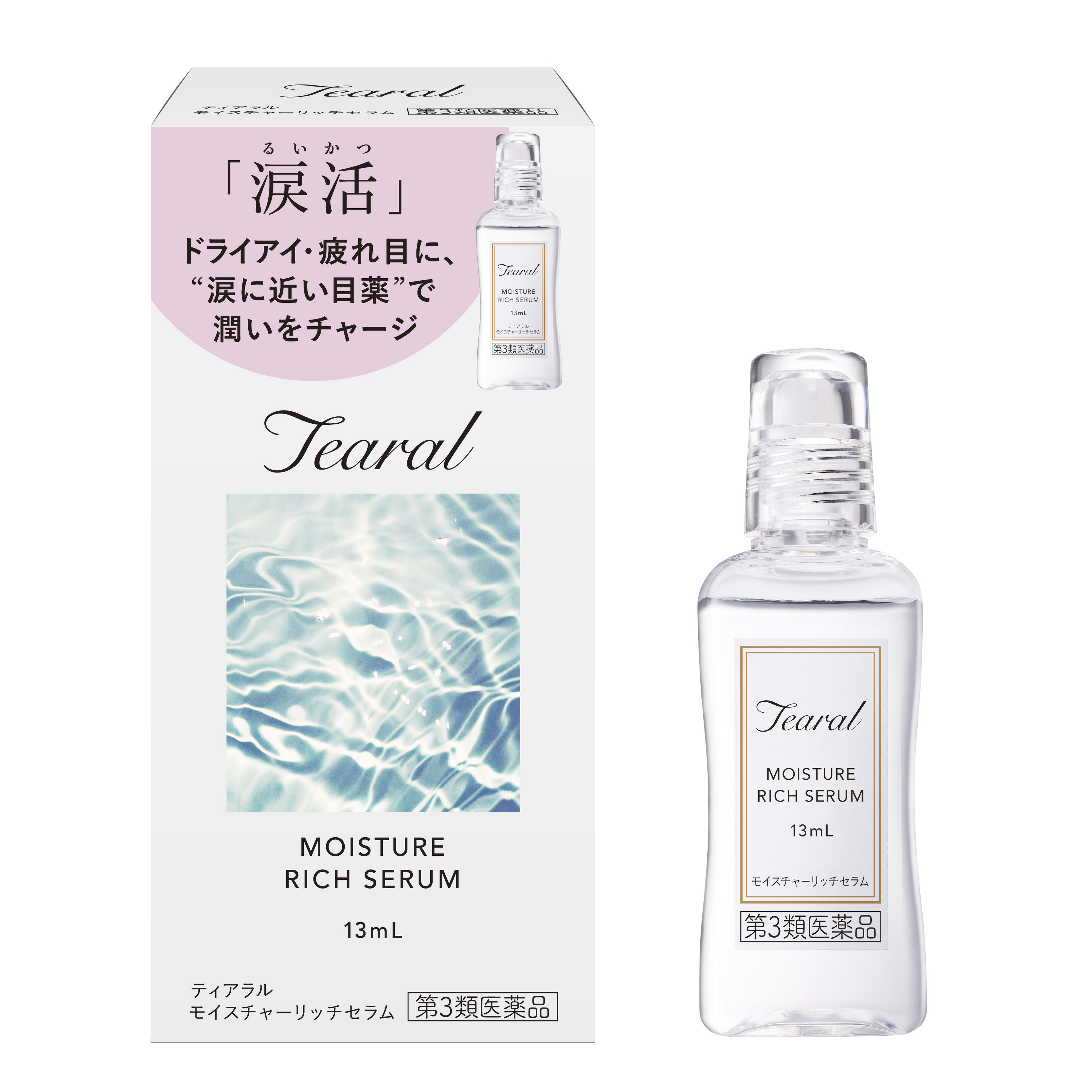 そこで「Tearal(ティアラル)」は、涙に近いナチュラルな処方を実現した人工涙液「モイスチャーリッチセラム」を開発しました。リッチな潤いを届け、目の渇きや不快感を改善します。