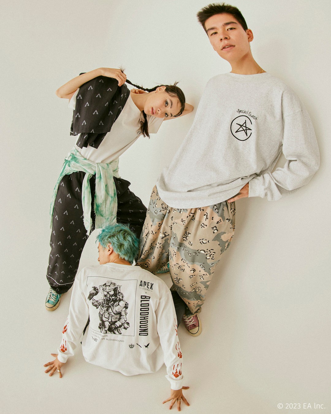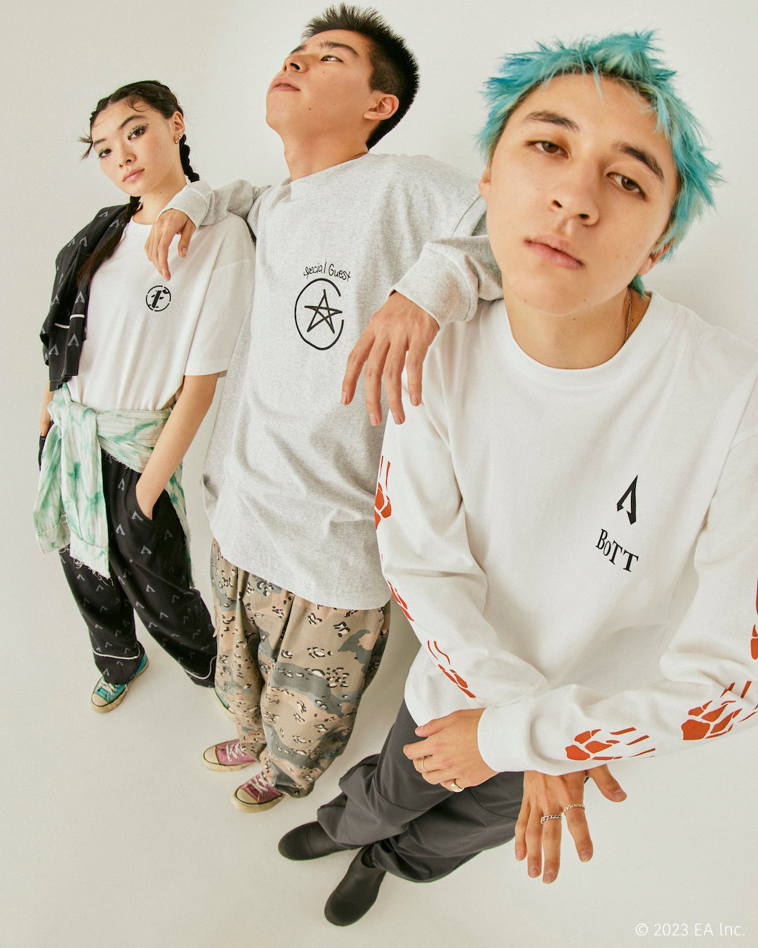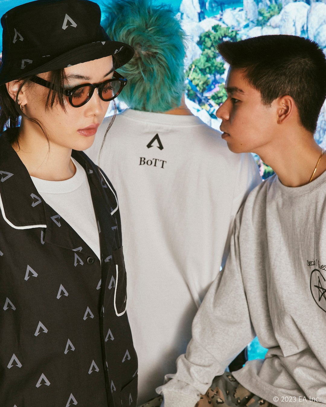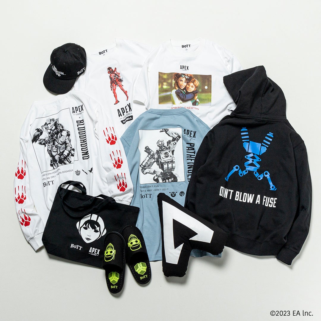 今回のコラボレーションでは、同タイトルの基本プレイ形態のひとつ『アリーナ』での対戦形式であるスリーマンセル(1チーム3人)の構成を踏襲し、〈BoTT(ボット)〉、〈SPECIAL GUEST K.K.(スペシャル ゲスト)〉、〈FAF(エフエーエフ)〉の3ブランドを招聘。各ブランドのデザイナーは、夜な夜なプライベートで『APEX LEGENDS™』をプレイする間柄で、『APEX LEGENDS™』の洗練された世界観の中から独自の目線でデザインを抽出・アレンジしています。