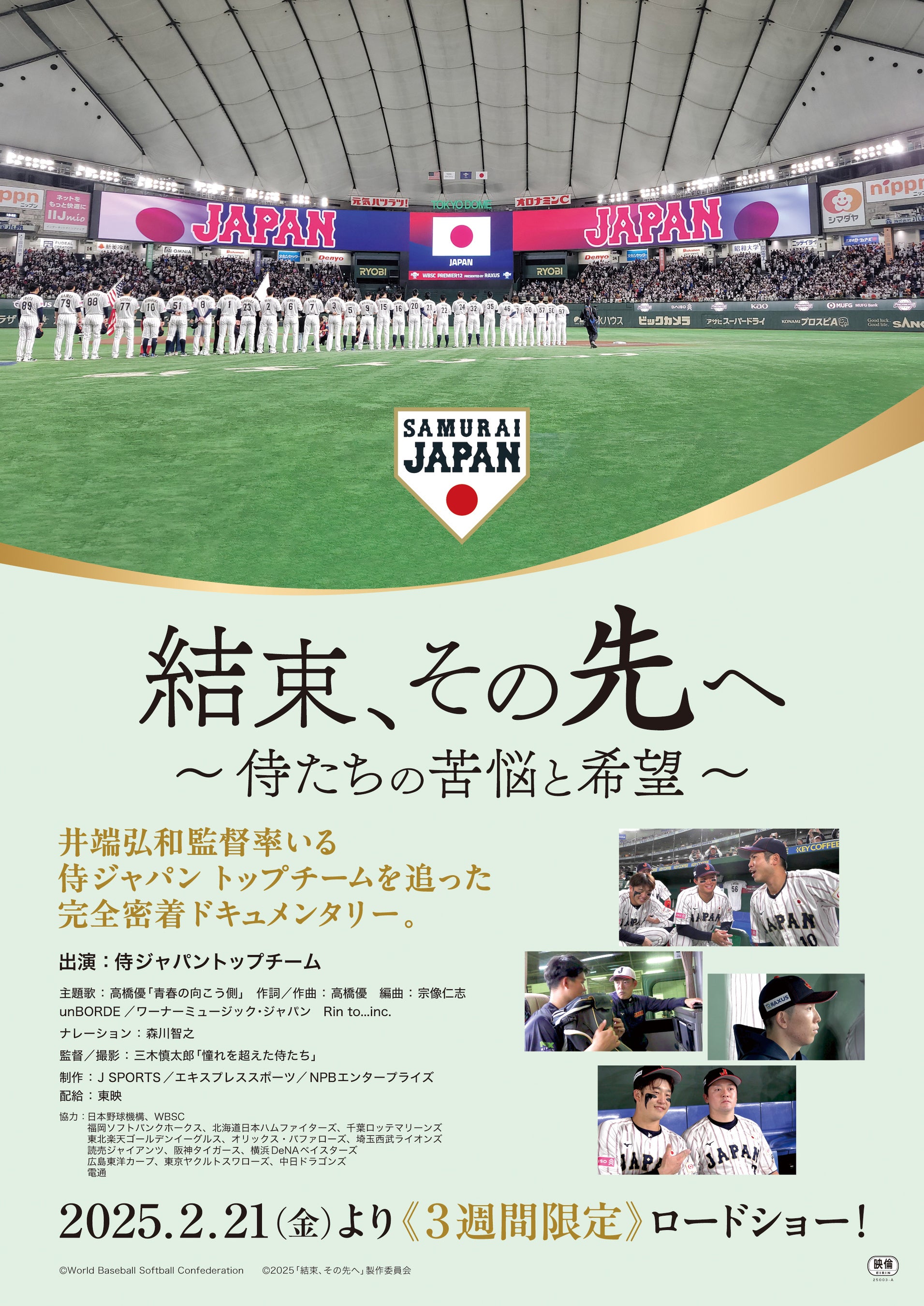 スポーツテレビ局・株式会社ジェイ・スポーツ(本社 東京都江東区、代表取締役社長 長谷一郎、以下「J SPORTS」 ※1)は、株式会社エキスプレススポーツ(本社 東京都渋谷区、代表取締役社長 山本篤)と株式会社NPBエンタープライズ(本社 東京都港区、 代表取締役 吉岡則雄)と、侍ジャパン完全密着ドキュメンタリー映画「結束、その先へ~侍たちの苦悩と希望~」を制作する運びとなりました。本作の配給は、東映株式会社(本社 東京都中央区、代表取締役社長 吉村文雄、以下「東映」)、プロ野球各球団の本拠地を中心に東京・新宿バルト9はじめ全国の上映劇場にて2025年2月21日(金)より3週間限定で公開します。