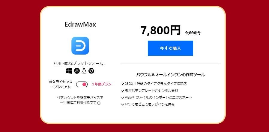 1年間プランは定価:9,800円を【2,000円OFF】の\7,800円/でご提供。