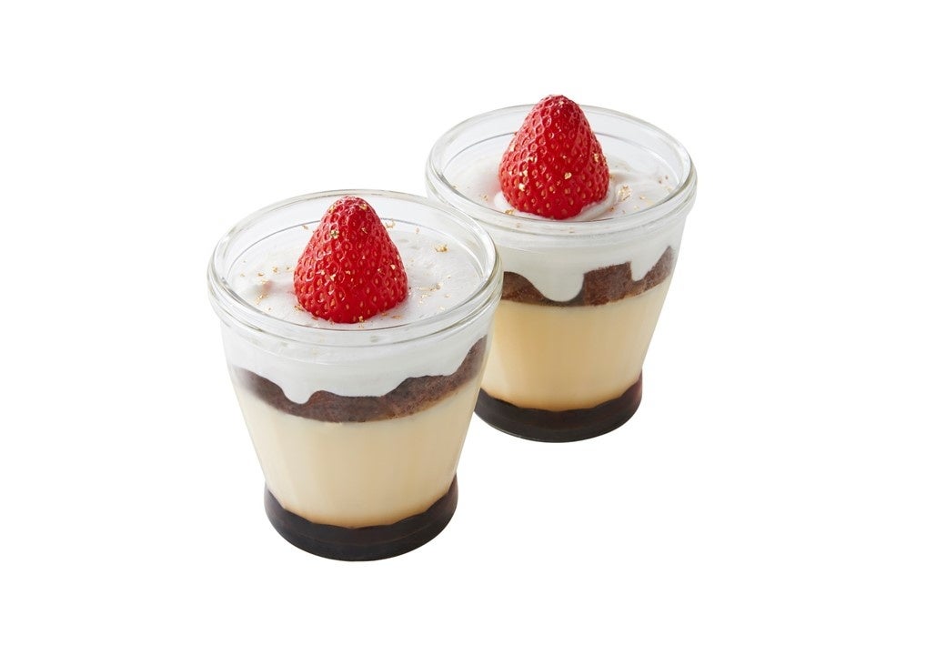 人気のカスタードプリンの上にダイスカットしたチョコレートスポンジケーキ、たっぷりのクリームシャンティを重ね、いちごをトッピングしました。聖夜を照らすキャンドルのようなプリン仕立てのクリスマスケーキです。